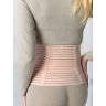 Пояс-бандаж для беременных женщин (универсальный) состоит из трех частей. Во время беременности нижнюю переднюю деталь пояса необходимо надеть широкой стороной под живот и зафиксировать сбоку на липучку-микропласт. Самую широкую часть пояса расположить в области поясницы и закрепить к нижней передней части по бокам. Узкую короткую деталь зафиксировать сверху, над животом. С помощью боковых липучек она позволяет надежно зафиксировать конструкцию, а также позволяет регулировать размер и посадку бандажа по форме животика. После родов изделие разворачивается и надевается широкой частью на живот и с помощью узкой детали регулируется степень фиксации пояса.