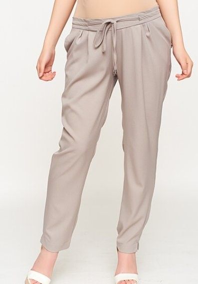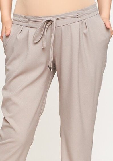 Брюки для беременных женские серо-бежевого цвета прямого силуэта, чуть зауженные к низу. Классические брюки для беременных летние прекрасно подойдут для теплого сезона.