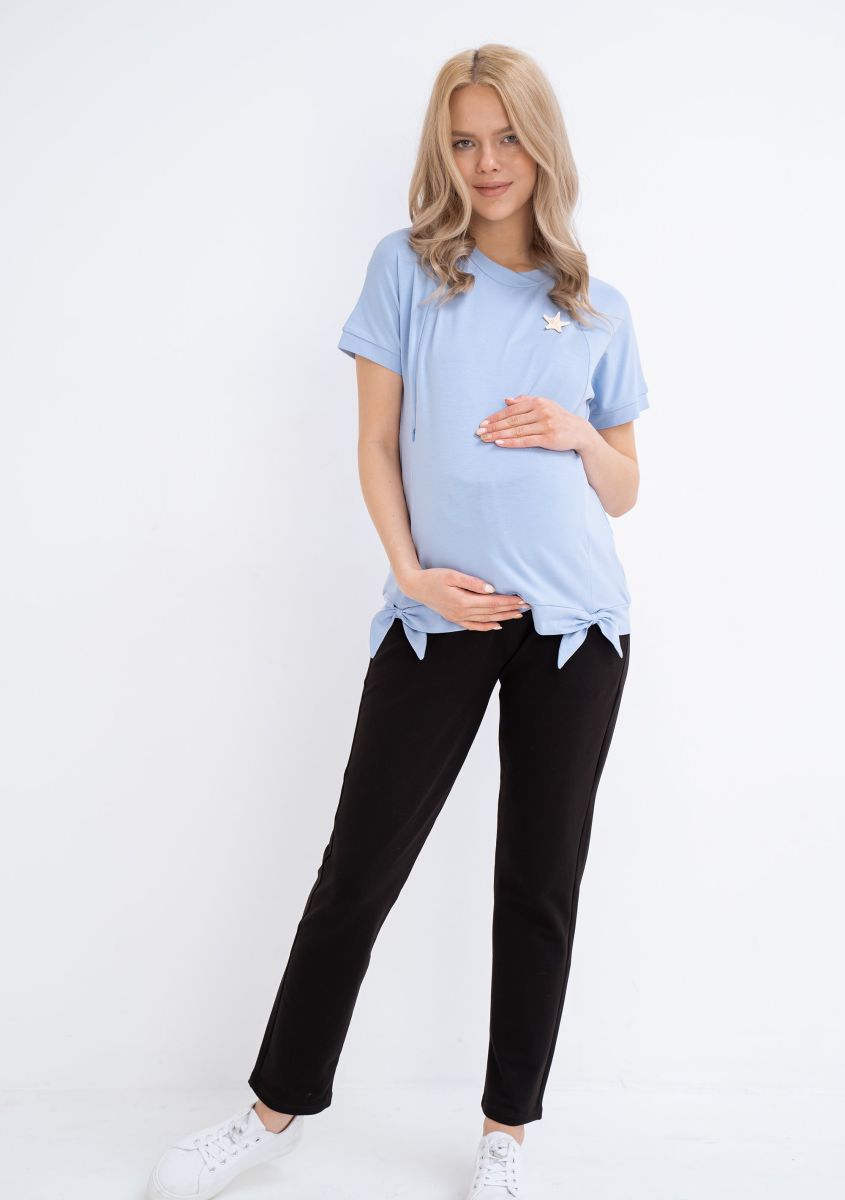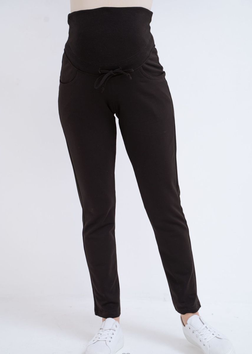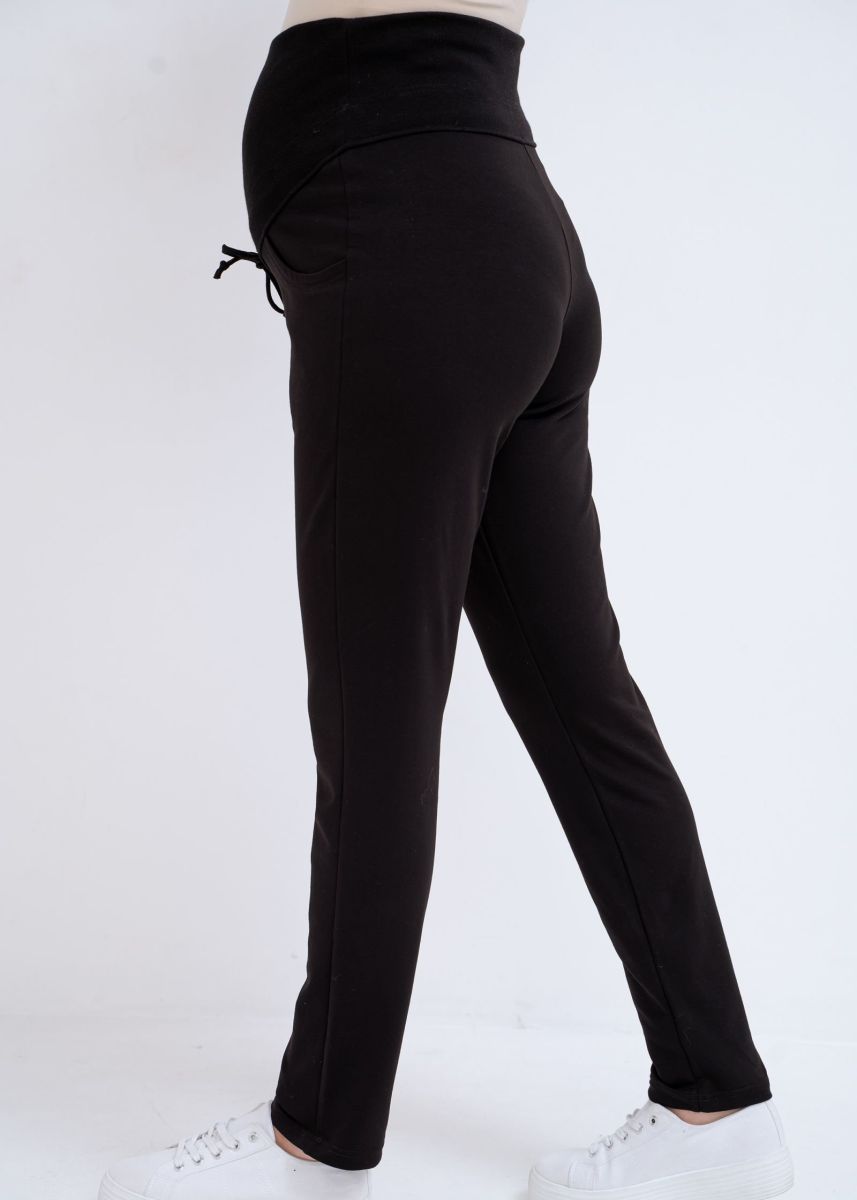 Повседневные брюки для беременных прямого свободного силуэта с прорезными карманами и шнурком под животиком. Мягкие и удобные, можно носить как спортивные или на каждый день. Выполнены из мягкого эластичного трикотажа (футер 2-х нитка). Высокий круговой трикотажный бандаж регулируется пуговкой по верху.