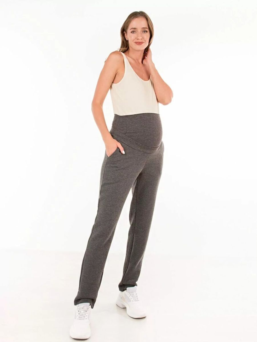 Хорошие , комфотрные , прямые брюки для беременных на холодный период из мягкого футера с начесом. Хорошо садятся по любой фигуре. Брюки спортивной модели. Спереди – функциональные карманы. Высокая мягкая трикотажная бандажная вставка хорошо облегает живот. Есть дополнительная широкая поясная резинка, которая проходит спереди под животом, а на спинке ложится по пояснице.