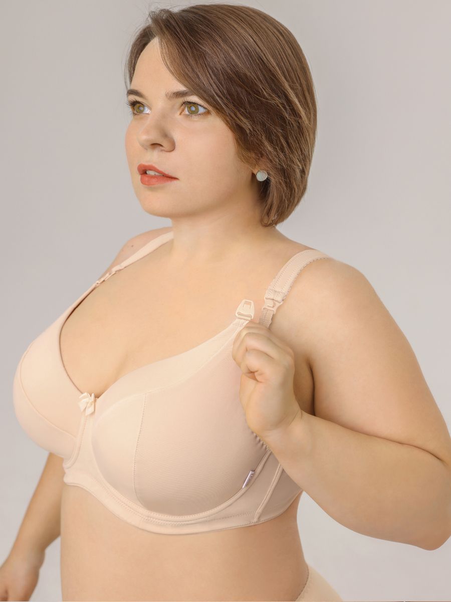 Бюстгальтер для кормления сохраняет цвет и форму, не деформируется после стирки. Рекомендуется носить с первого дня после родов. Эффектный модный бюстгальтер с широкими дублированными бретелями. Бюстгальтер на гибких каркасах надежно поддерживает грудь без сдавливания. Чашка Т-образной конструкции продублирована поролоном, приподнимает грудь, придает ей красивую форму. Бюстгальтер выполнен из приятной на ощупь воздухопроницаемой микрофибры, внутренняя стороны чашки — из хлопкового полотна. Удобная застежка-клипса позволяет открывать чашку для кормления малыша даже одной рукой.
