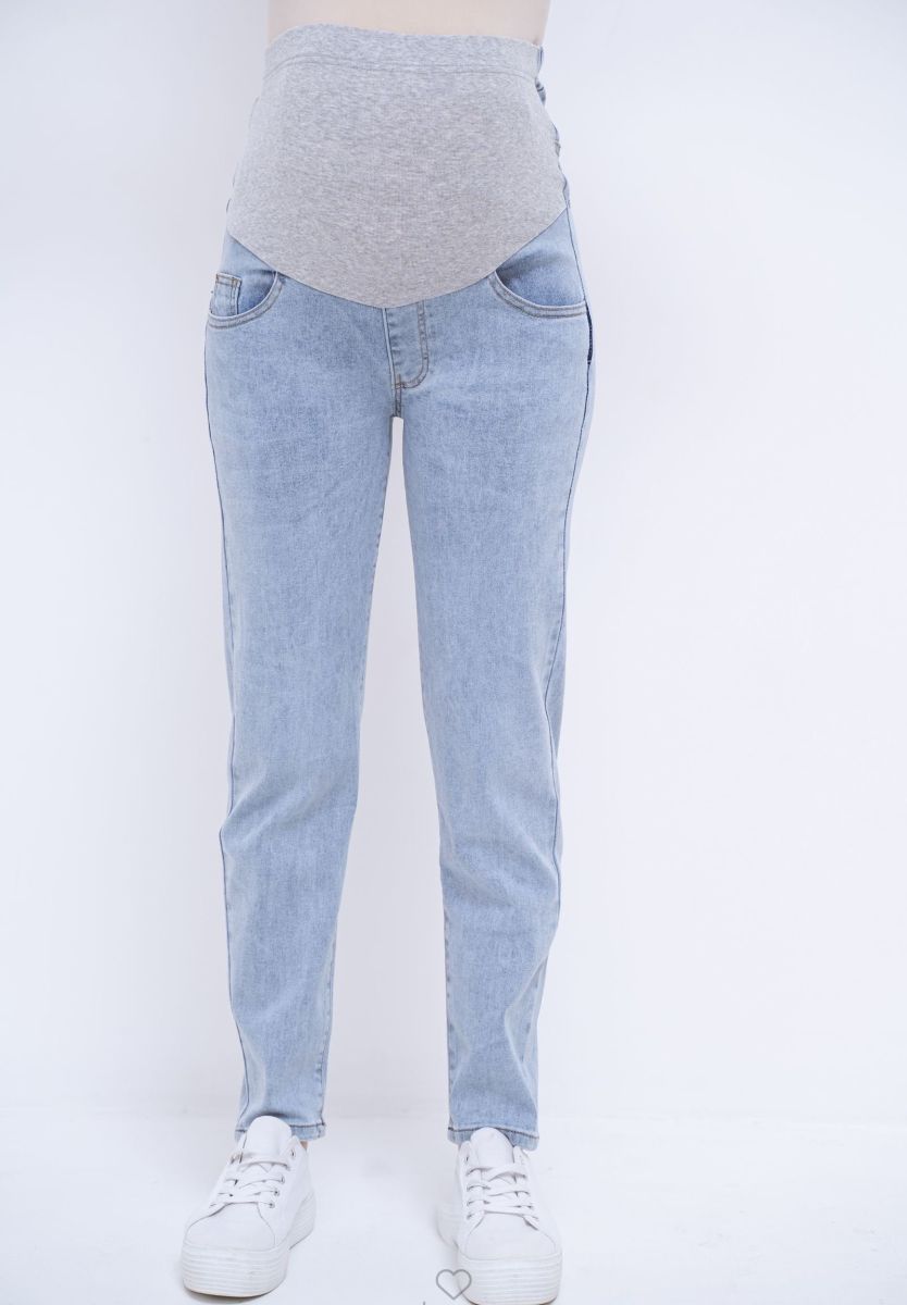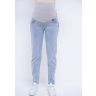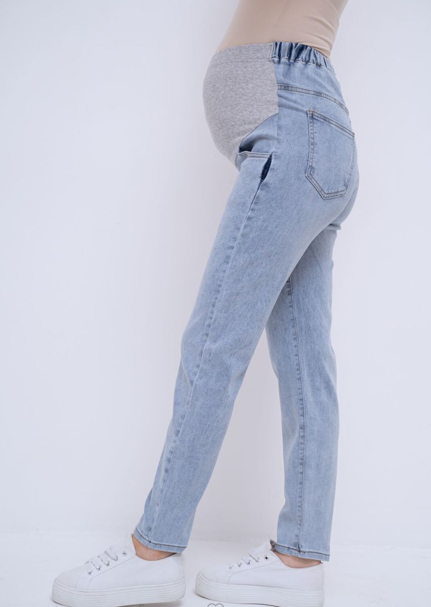 Джинсы для беременных. Выполнены из тонкой, мягкой, очень эластичной джинсы на тёплую весну и лето. Сзади по спинке резинка, обеспечивающая плотное прилегание к пояснице.Высокий трикотажный бандаж на передней части регулируется пуговкой по верху.