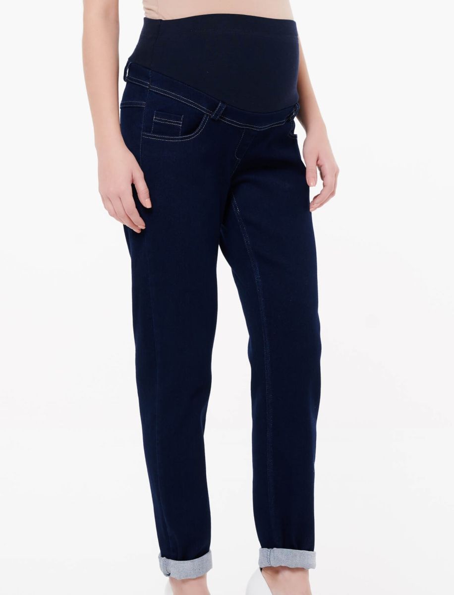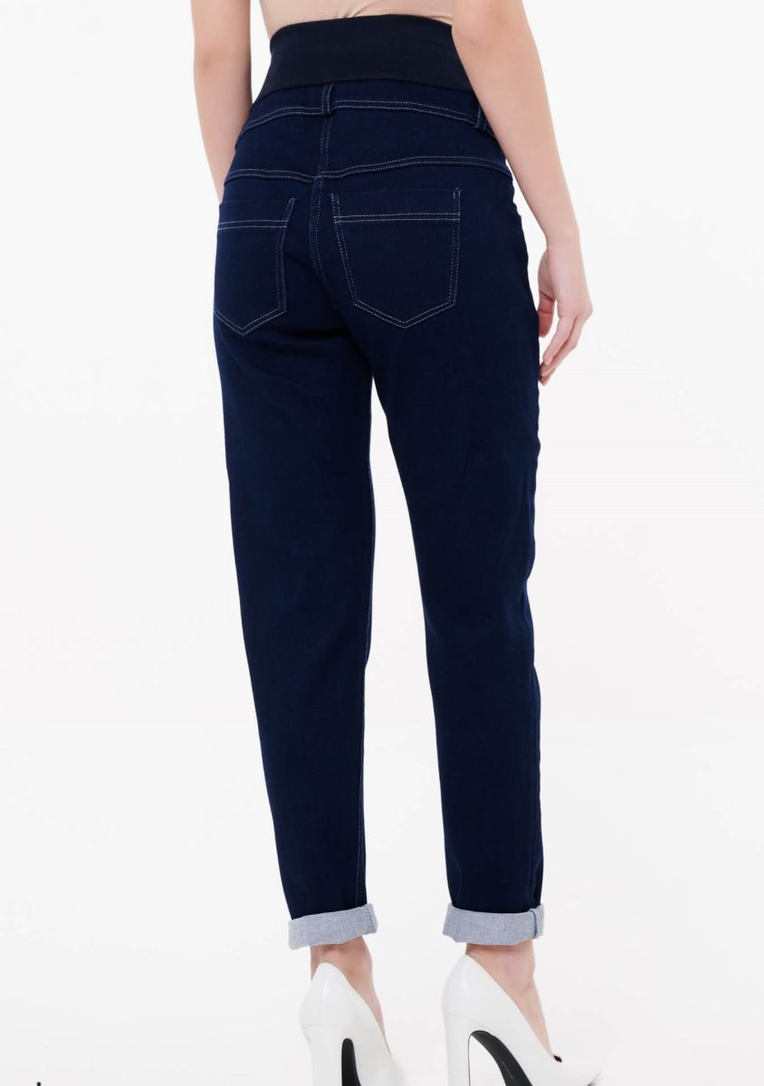 Джинсы для беременных прямые темно-синего цвета. Широкая эластичная вставка поддерживает животик, фиксирует модель по фигуре независимо от срока беременности.