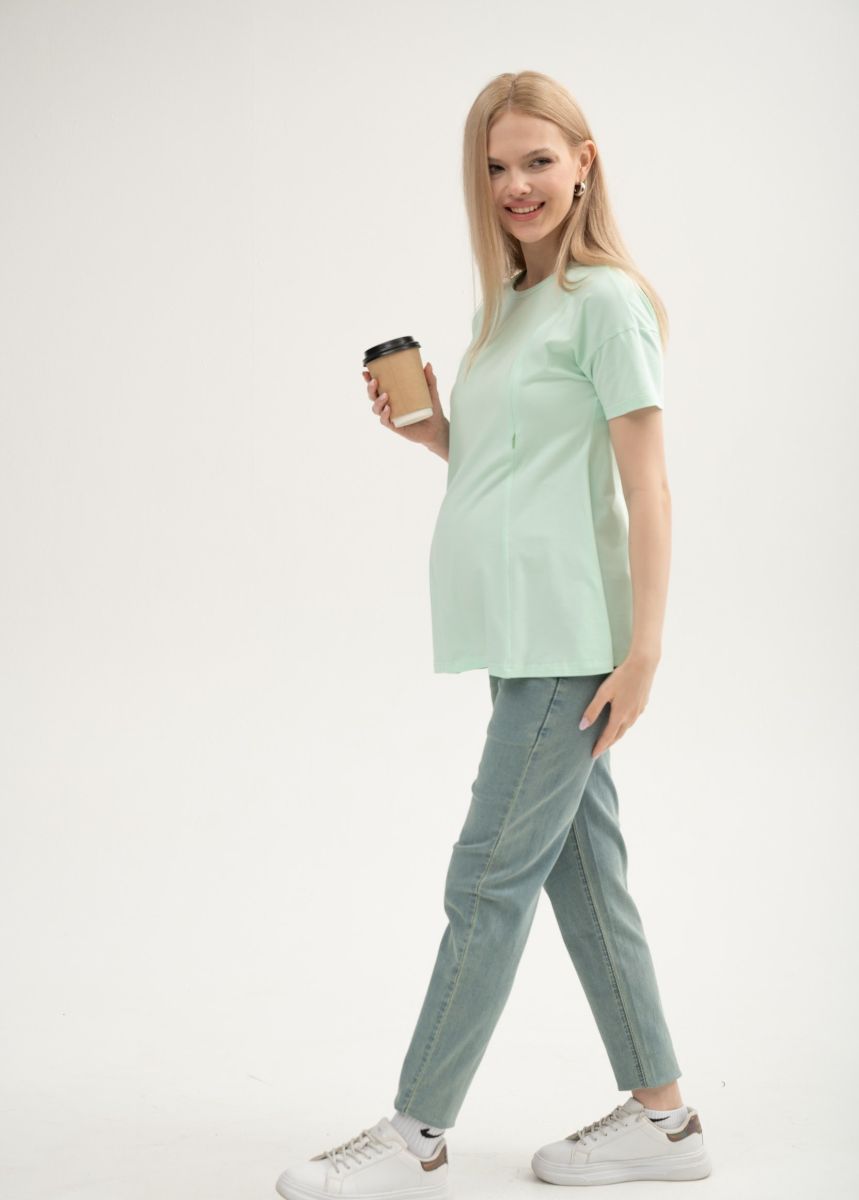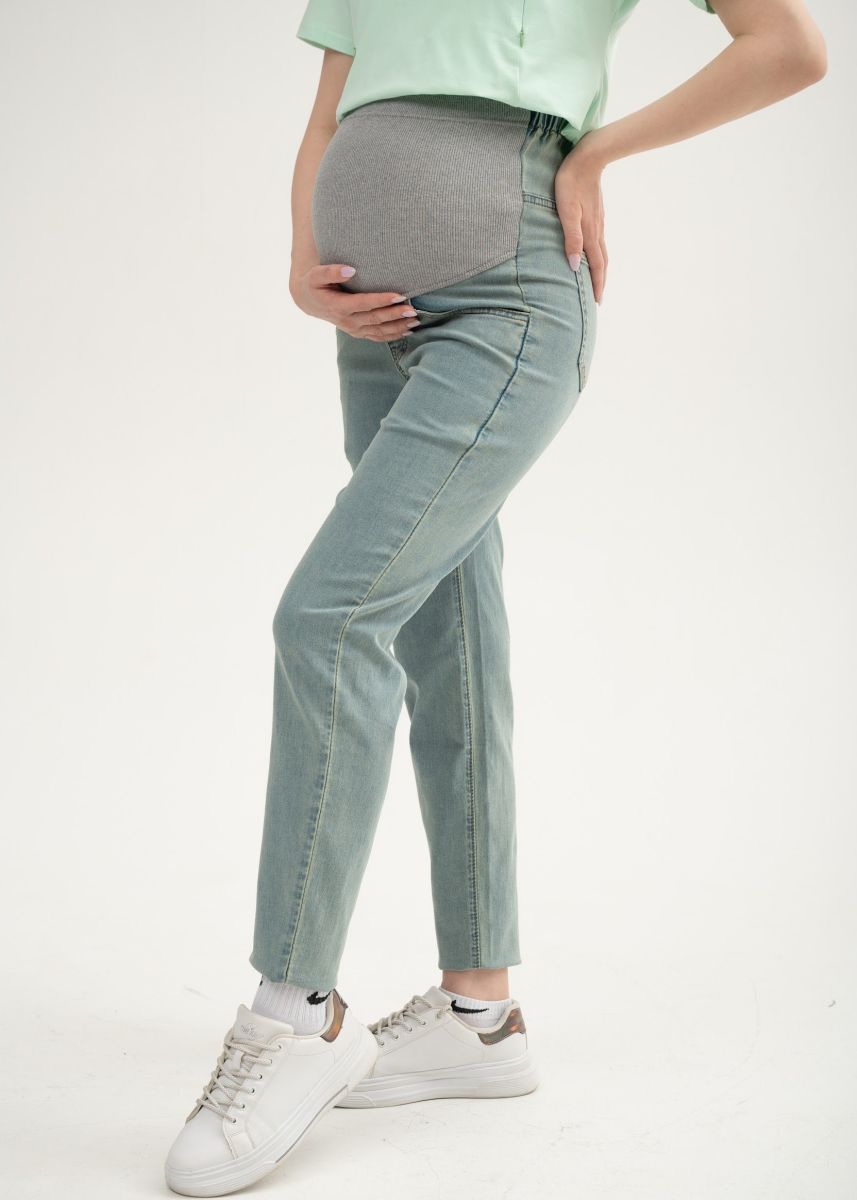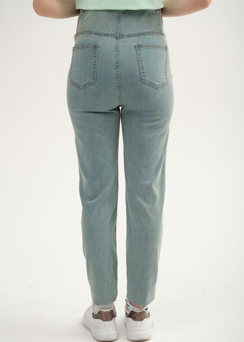 Джинсы для беременных. Выполнены из облегченной, мягкой, очень эластичной джинсы на тёплую весну и лето. Сзади по спинке резинка, обеспечивающая плотное прилегание к пояснице.Высокий трикотажный бандаж на передней части регулируется пуговкой по верху.