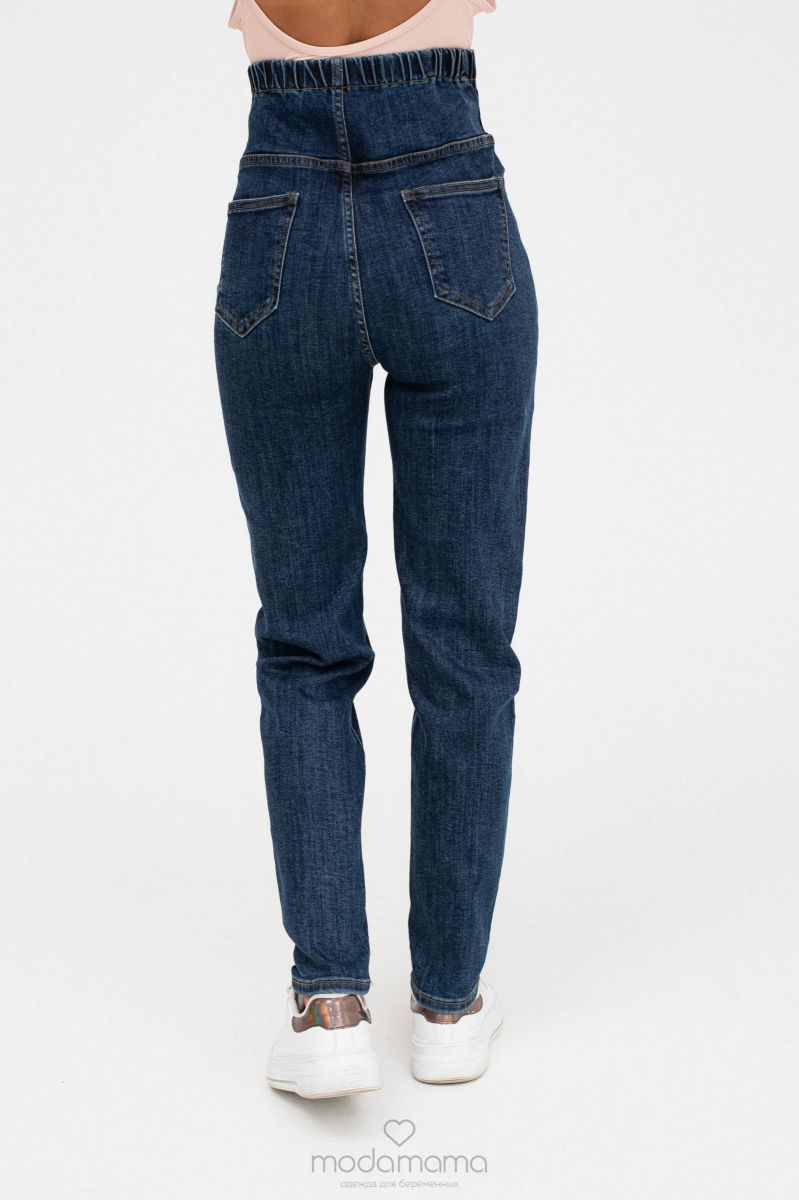Джинсы для беременных. Высокий трикотажный бандаж регулируется по верху резинкой с пуговкой. Сзади по спинке резинка для хорошего прилегания. Выполнены из мягкой, эластичной, плотной джинсы.