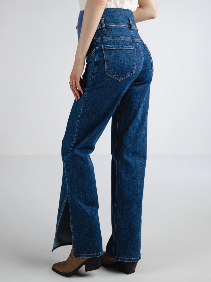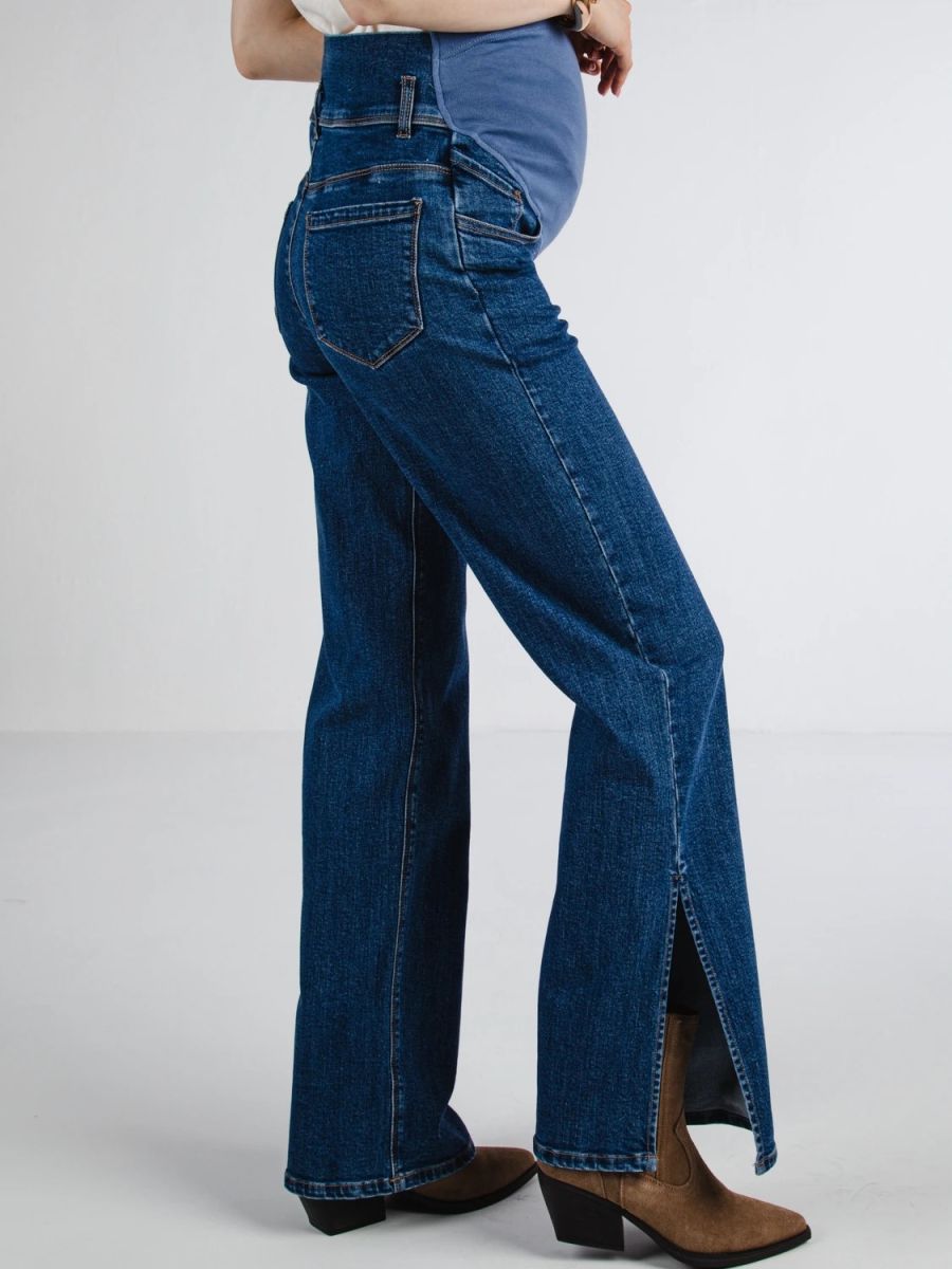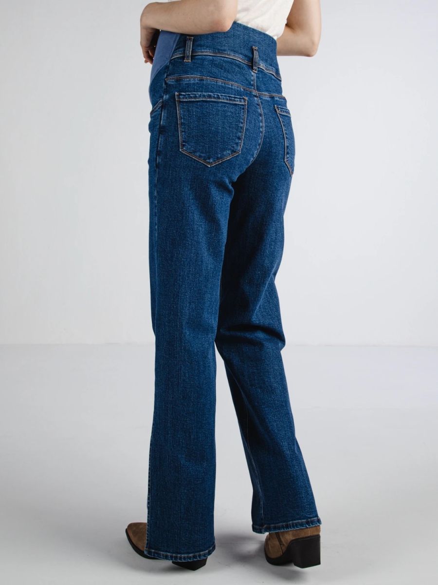 Джинсы для беременных. Высокая посадка на живот. Объем регулируется за счет перфорированной резинки, продетой в трикотажную вставку изделия, которая перестегивается на пуговицу. Специальный крой с учетом анатомических особенностей беременных позволяет носить изделие от начала до конца беременности, а также после родов. Цельная спинка хорошо держится на талии, что исключает спадание джинсов. Джинсы можно носить на любом сроке беременности и после родов.