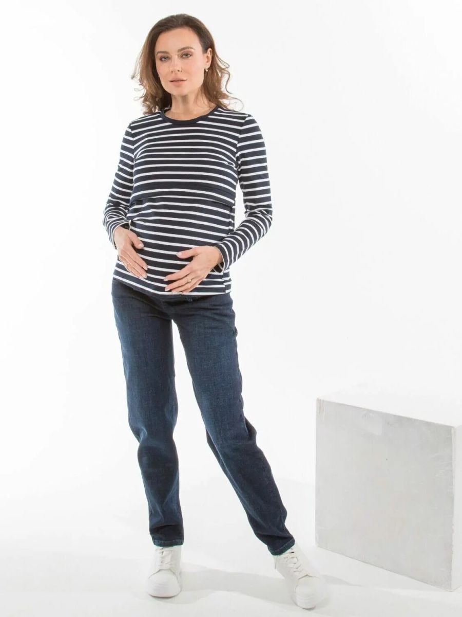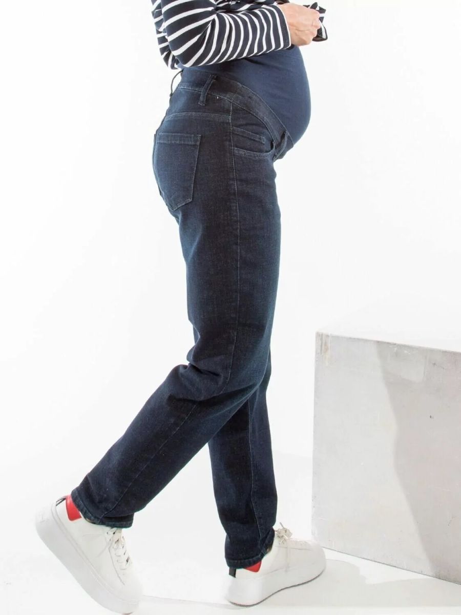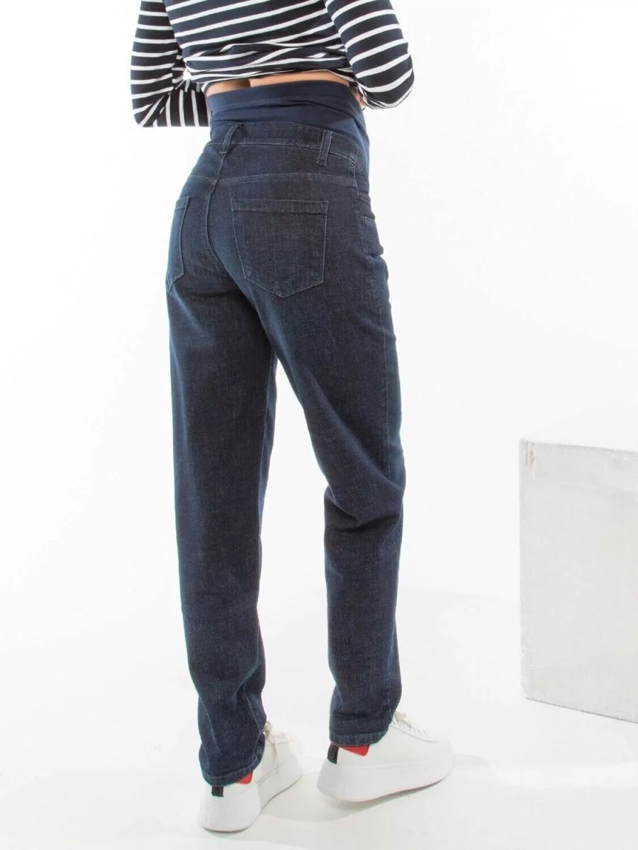 Джинсы для беременных, модель МОМ. Высокая посадка на живот. Объем регулируется за счет перфорированной резинки, продетой в трикотажную вставку изделия, которая перестегивается на пуговицу. Специальный крой с учетом анатомических особенностей беременных позволяет носить изделие от начала до конца беременности, а также после родов.