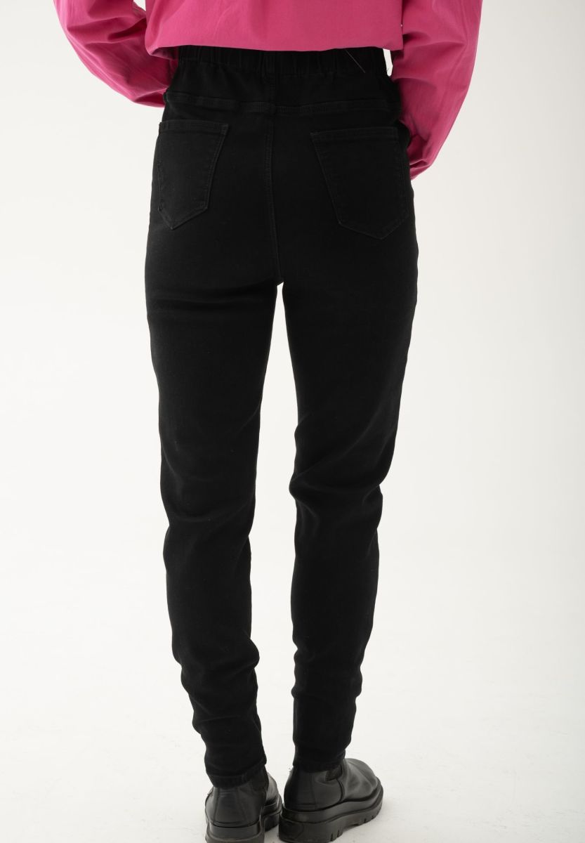 Джинсы для беременных с небольшой декоративной нашивкой на переднем кармане. Выполнены из мягкой, плотной, хорошо тянущейся джинсы с очень эластичной ворсовой изнанкой (тонкий флис). Сзади по спинке резинка, обеспечивающая плотное прилегание к пояснице. Высокий трикотажный бандаж на передней части регулируется пуговкой по верху. Размеры соответствуют 25-XS; 26-S; 27- M; 28-L; 29-XL