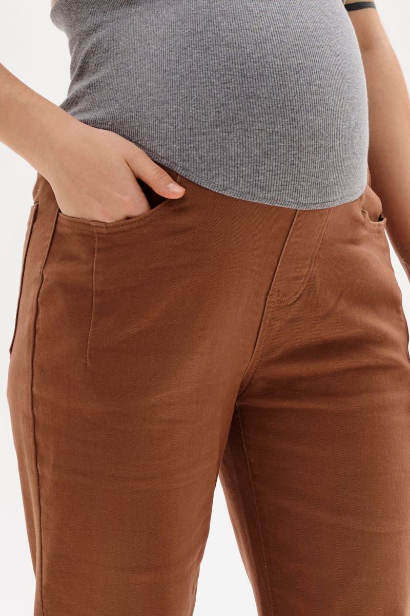 Красивый цвет ткани дополнен широкой вставкой в области талии из эластичного трикотажа, которая растягивается и придерживает животик на всем сроке беременности. Размер можно регулировать специальной потайной резинкой с пуговицей.