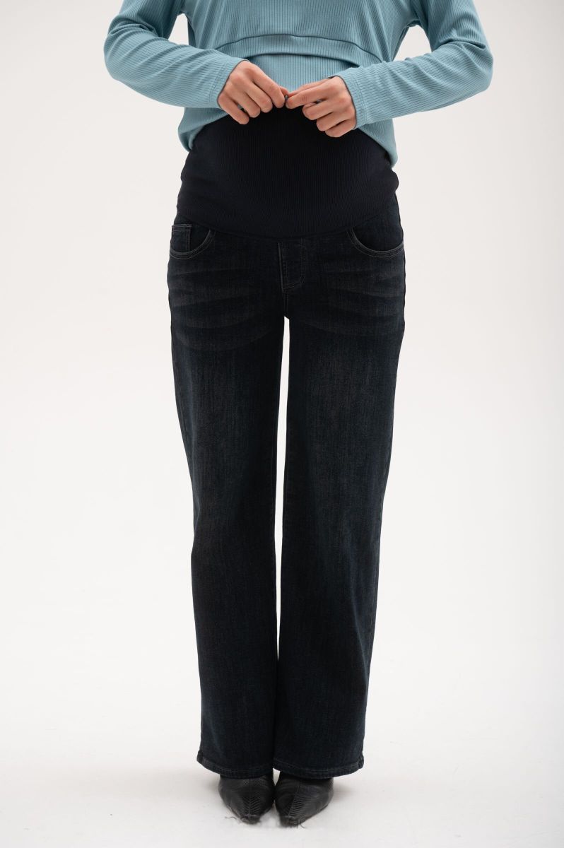 Утепленные джинсы свободного прямого кроя для беременных. Сзади по спинке резинка, обеспечивающая плотное прилегание к пояснице. Высокий трикотажный бандаж на передней части регулируется пуговкой по верху. Выполнены из плотной, мягкой, эластичной джинсы с петельчатой изнанкой.