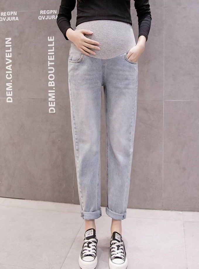 Эластичная джинсовая ткань, трикотажная вставка (хлопок 100%), а также специальный крой учитывает изменения фигуры на любом сроке беременности. Удобные, легкие, стрейчевые светло-голубые джинсы на теплую весну и лето для стильных будущих мамочек!