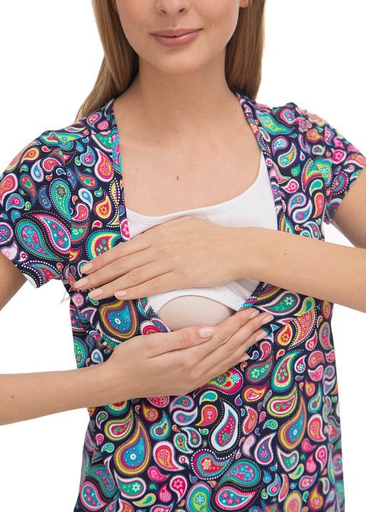 Комфортная модель для беременных и кормящих сшита из мягкого хлопкового трикотажа высокого качества «пенье». Фасон не стесняет движений, предусматривает дополнительный объем для растущего животика, снизу на манжете. Футболка также очень удобна в период кормления малыша грудью, имеет секрет кормления в виде внутреннего слоя. Можно носить и после окончания периода беременности и грудного вскармливания.
