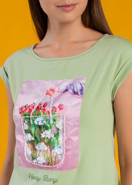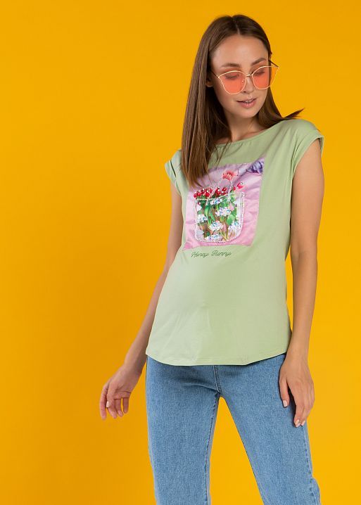 Стильная универсальная базовая футболка полуприлегающего силуэта со спущенным рукавом. Создана с учётом постепенно увеличивающегося живота для всего срока беременности. Подходит для ношения после родов. Особенности модели: объёмный принт, отвороты по рукавам, закруглённый низ.