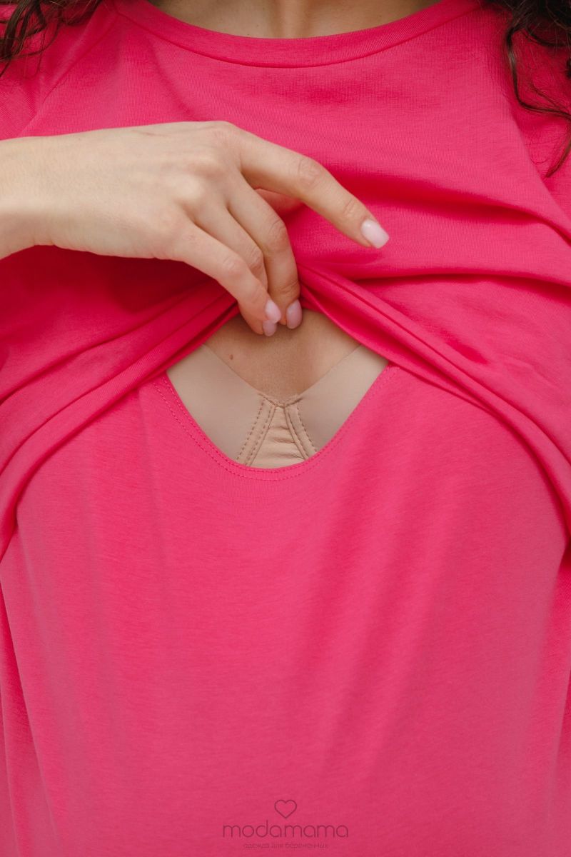 Футболка для беременных и кормящих мам со спущенным плечом. Выполнена из тонкого хлопкого трикотажа с добавлением эластана. Секрет кормления в двухслойной верхней части.
