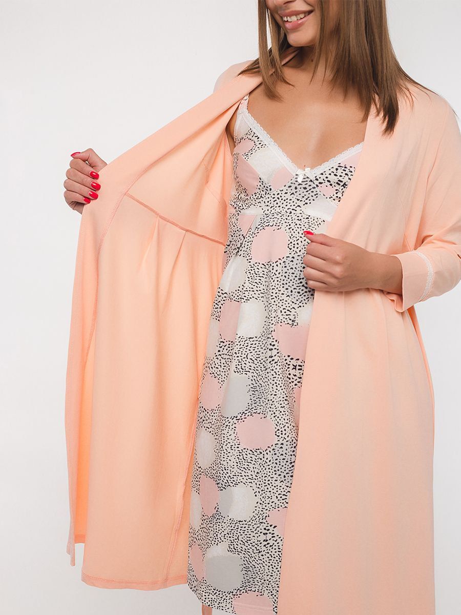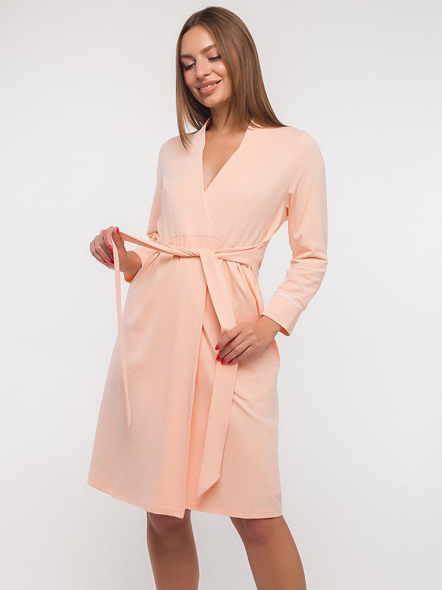 Халат с вшивным поясом, рукав 3/4, удобные врезные карманы.