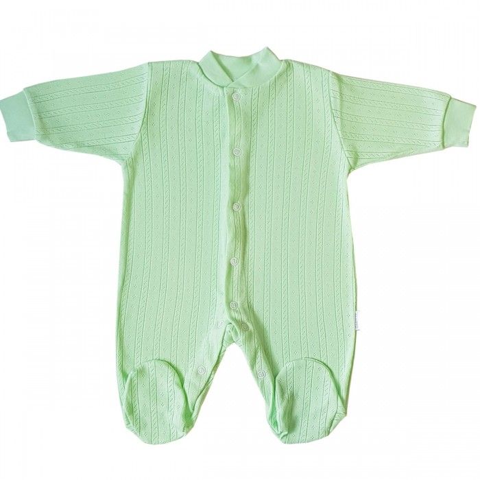 Детский комбинезон из нежного ажура. Трикотажный ажур представляет собой рибану из 100%-го хлопка, связанную в мелкую полоску. Комбинезон сохраняет форму после стирки, не мнется, приятен на ощупь.
