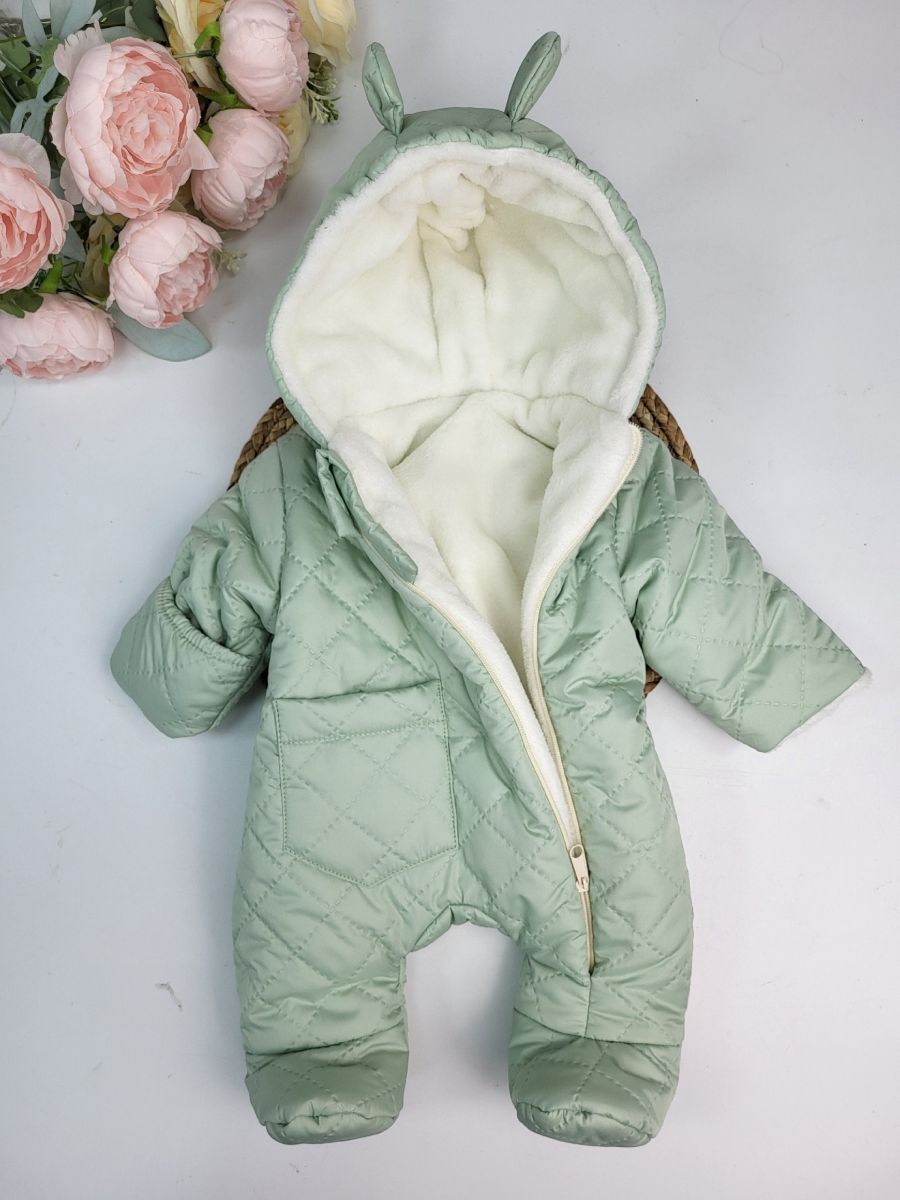 Отлично подойдет для выписки и прогулок в коляске. Ушки на капюшоне и кармашек на полочке добавляют милоты. На рукавах специальные отвороты, чтобы при необходимости закрывать ручки.