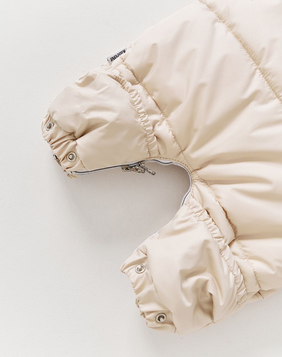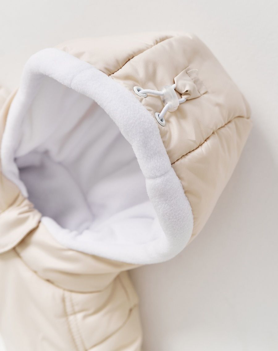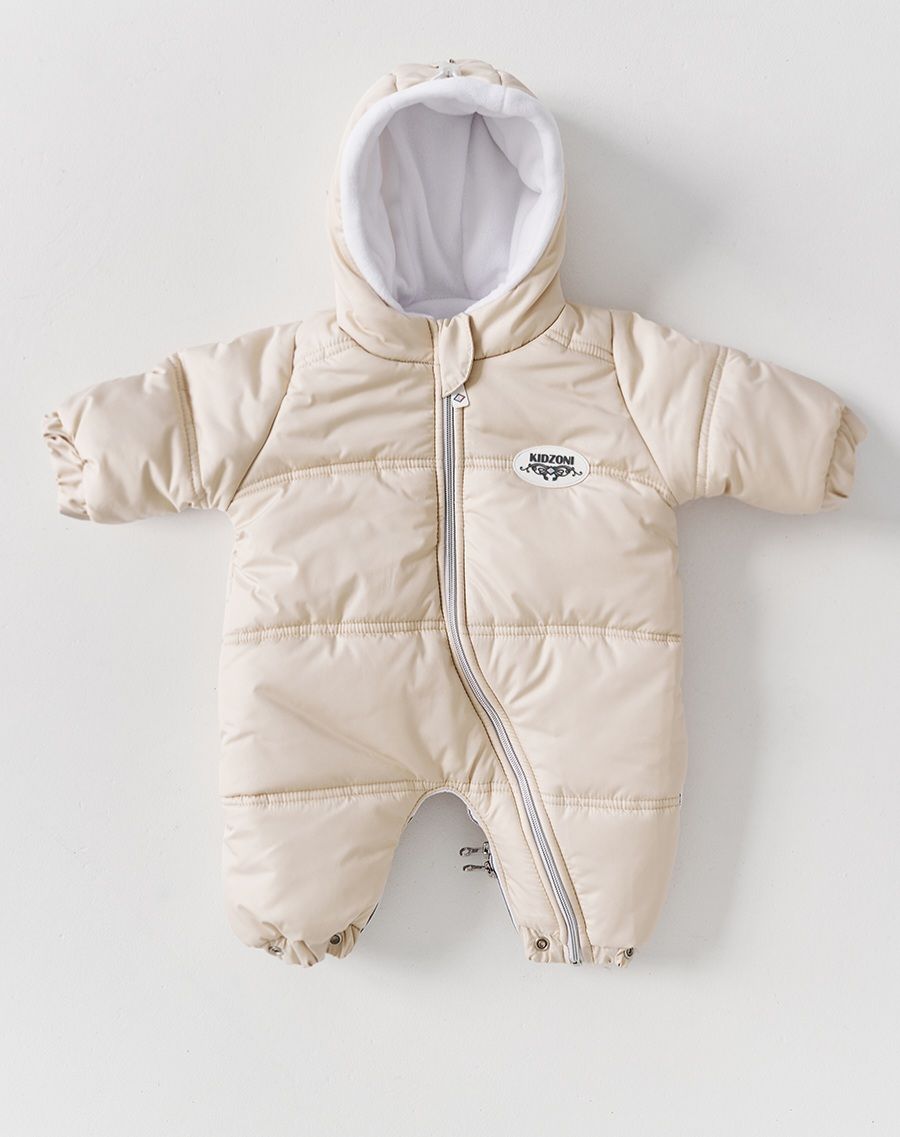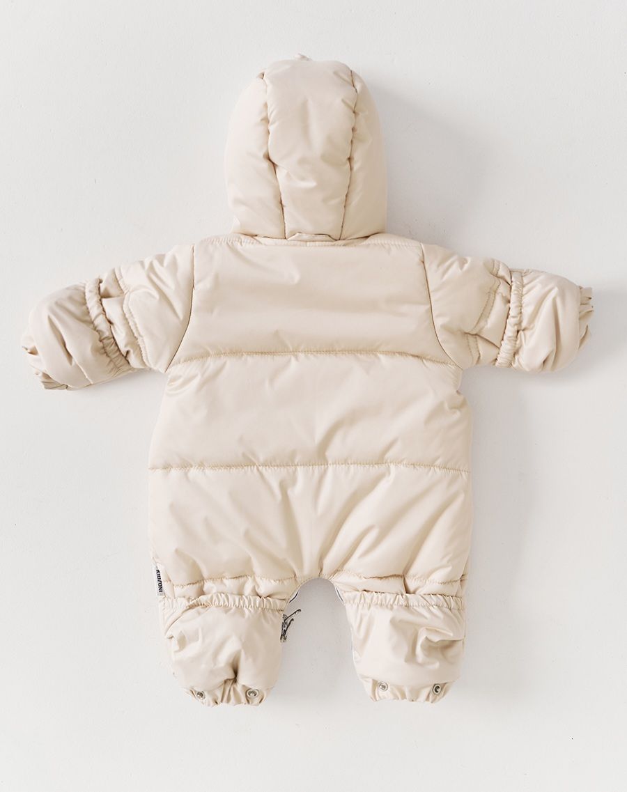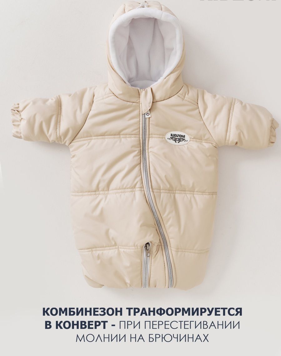 Возраст: 62 (0-3 мес.) / 68 (3-6 мес.) / 74 (6-9 мес.) / 80 (9-12 мес.)¶Ткань верха: ткань курточная 100% ПЭ с водоотталкивающей пропиткой¶Подклад: хлопок 30%, полиэстер 70%¶Сезон: зима¶Утеплитель (холлофайбер), температурный режим:¶300 гр. + флис (от -5 до -30С)¶Цвета: белый, бежевый, св.серый, молочный¶¶Комбинезон-трансформер обеспечивает защиту от ветра, отлично сохраняет свои свойства после стирок, не деформируется. У данной модели есть теплые отвороты, которые заменяют варежки и пинетки. Кнопки внизу брючины предназначены как дополнительное крепление при использовании изделия как конверт.