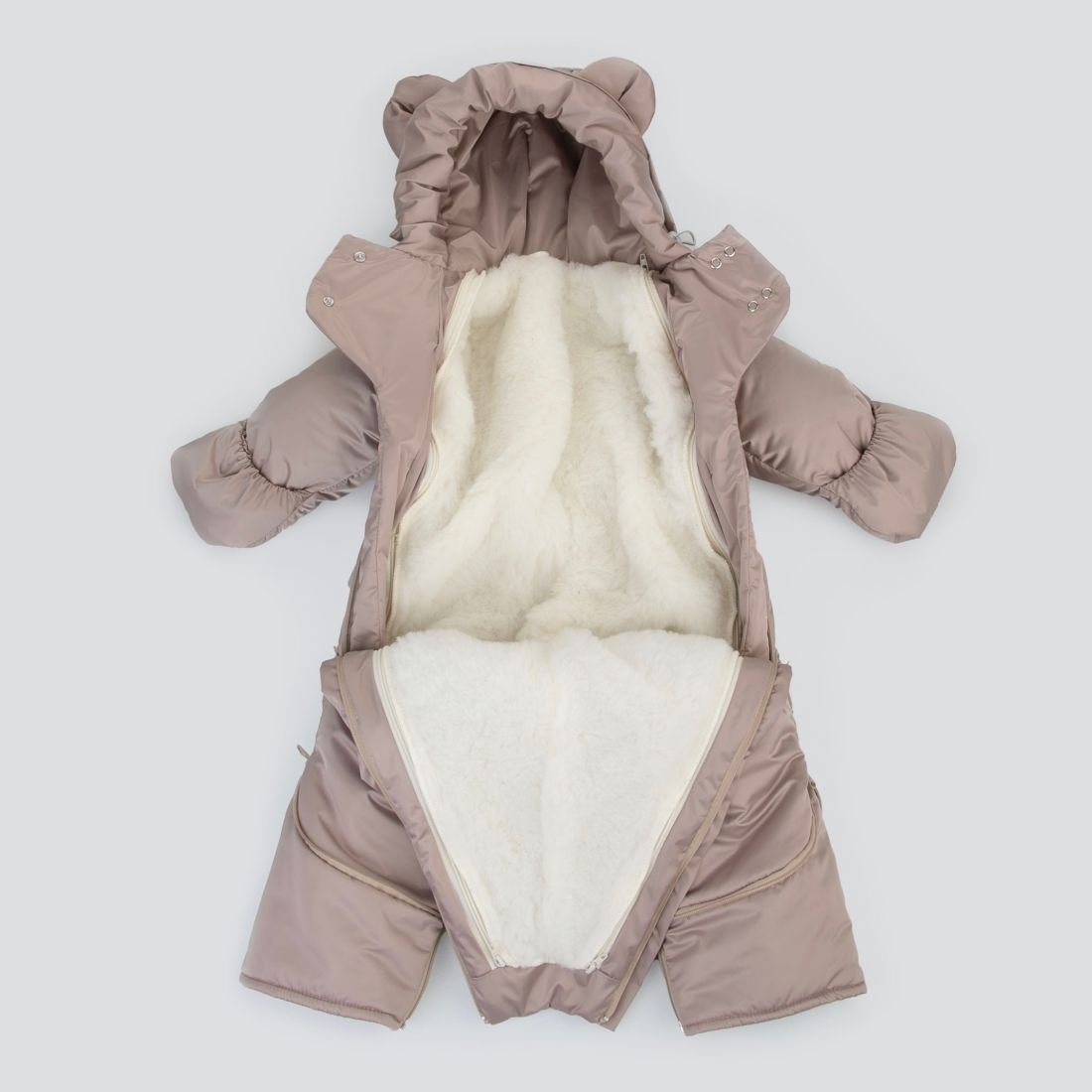 Меховая подстежка у комбинезона полностью отстегивается и комбинезон становится демисезонным или зимним по желанию и погоде.