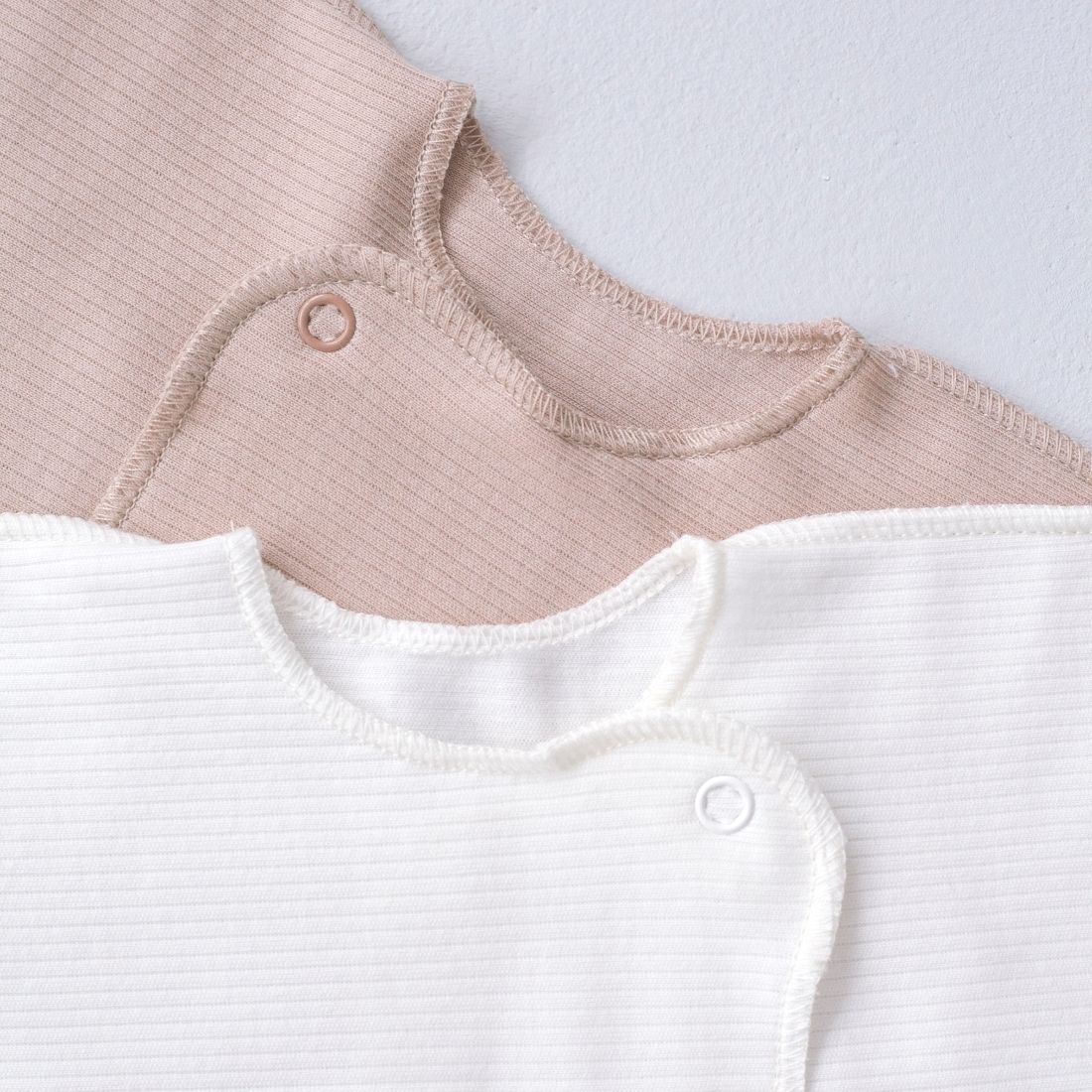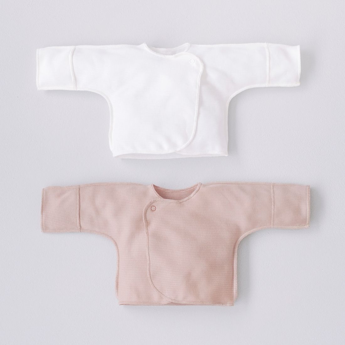 Комплект из двух распашонок с разны цветовым исполнением, с рукавами.