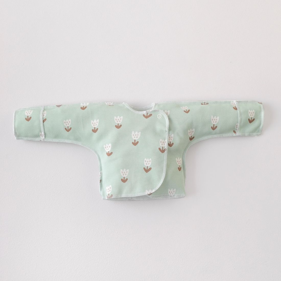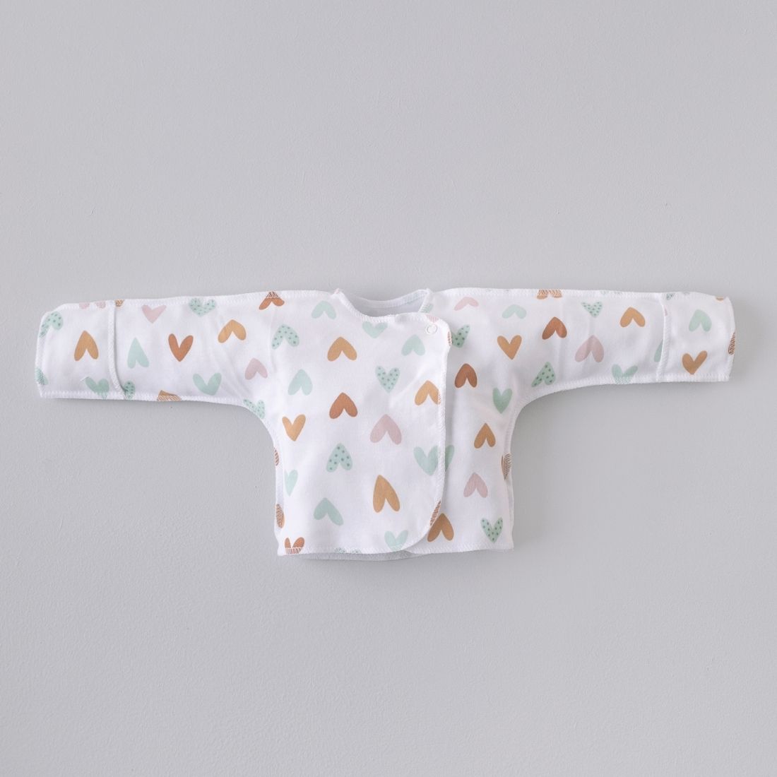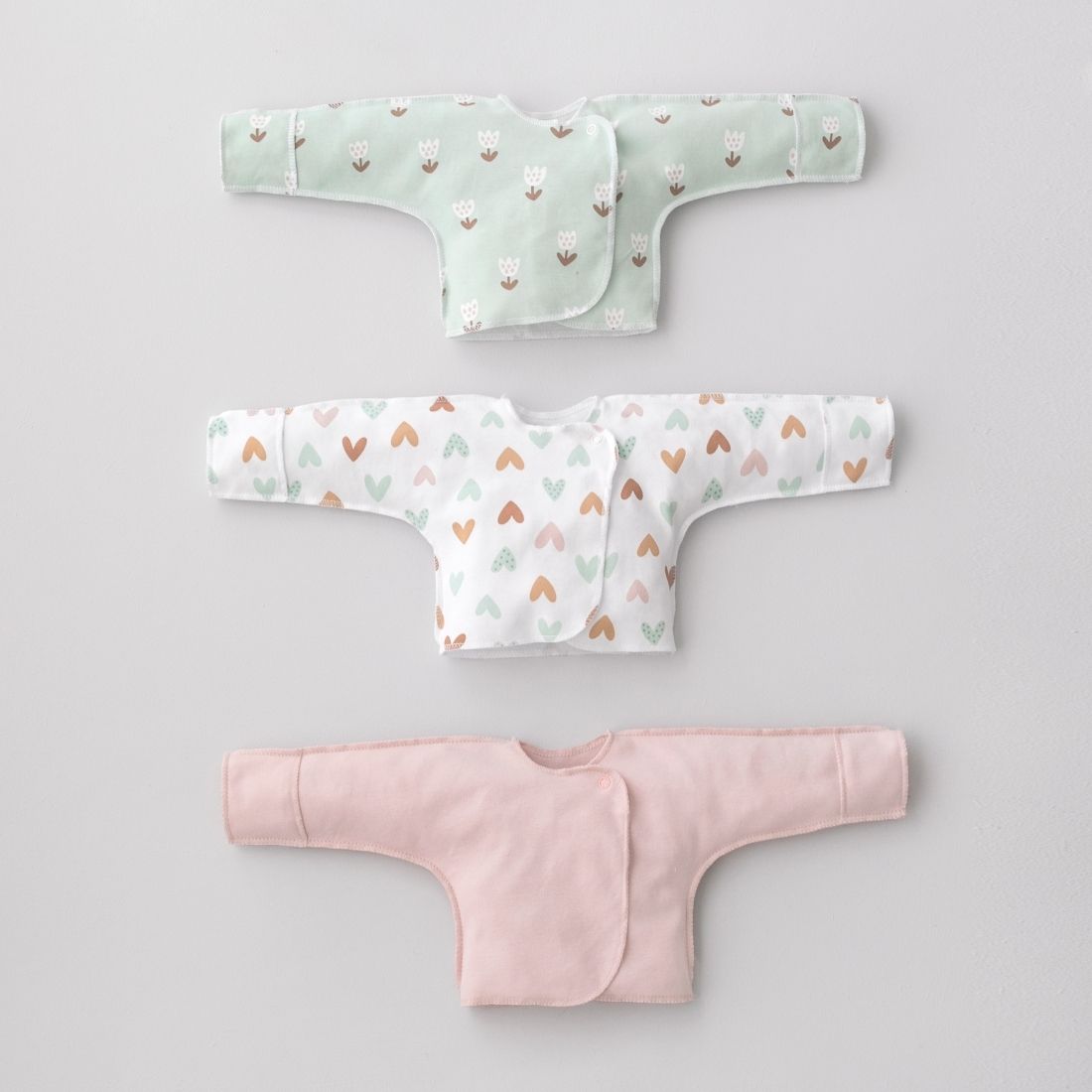 Комплект из трех распашонок с разным цветовым исполнением, с рукавами.