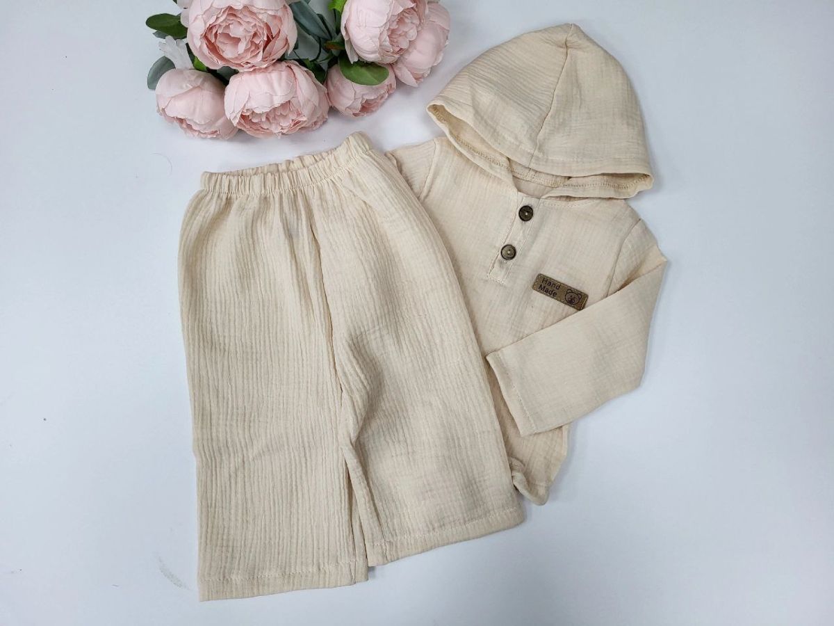 Комплект муслин 2в1(рубашка с капюшоном+штаны)