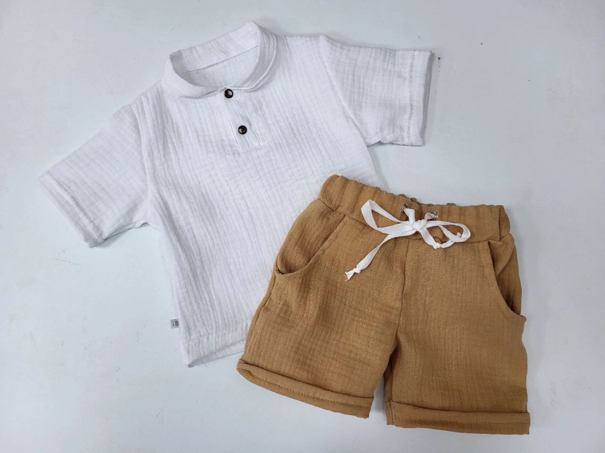 Комплект из муслина для мальчиков - идеальная одежда на жаркое лето.