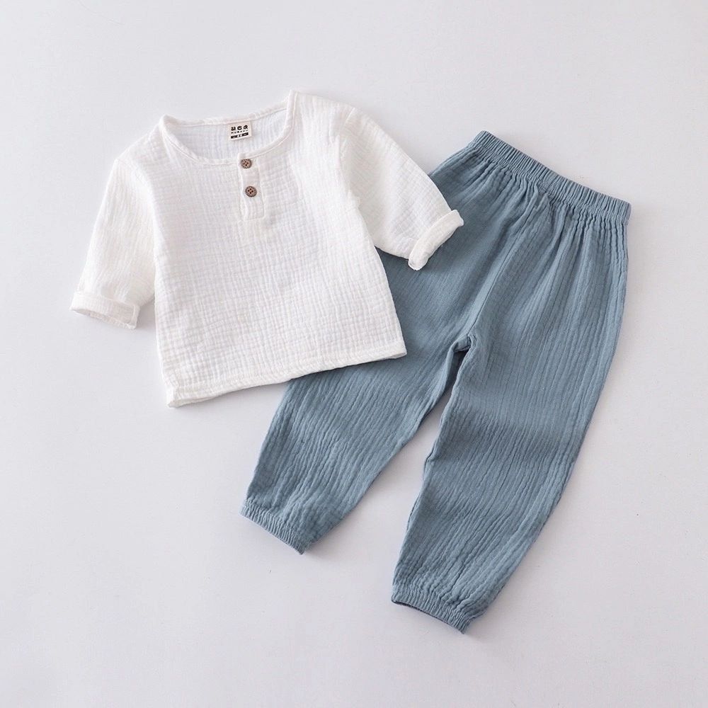 Комплект из муслина для мальчиков - идеальная одежда на жаркое лето.