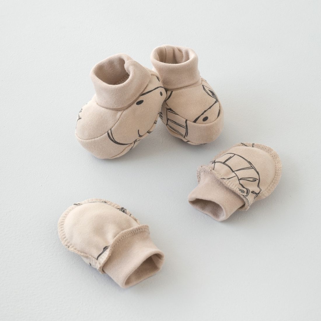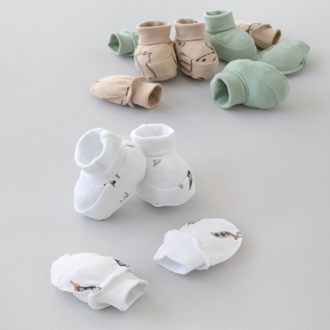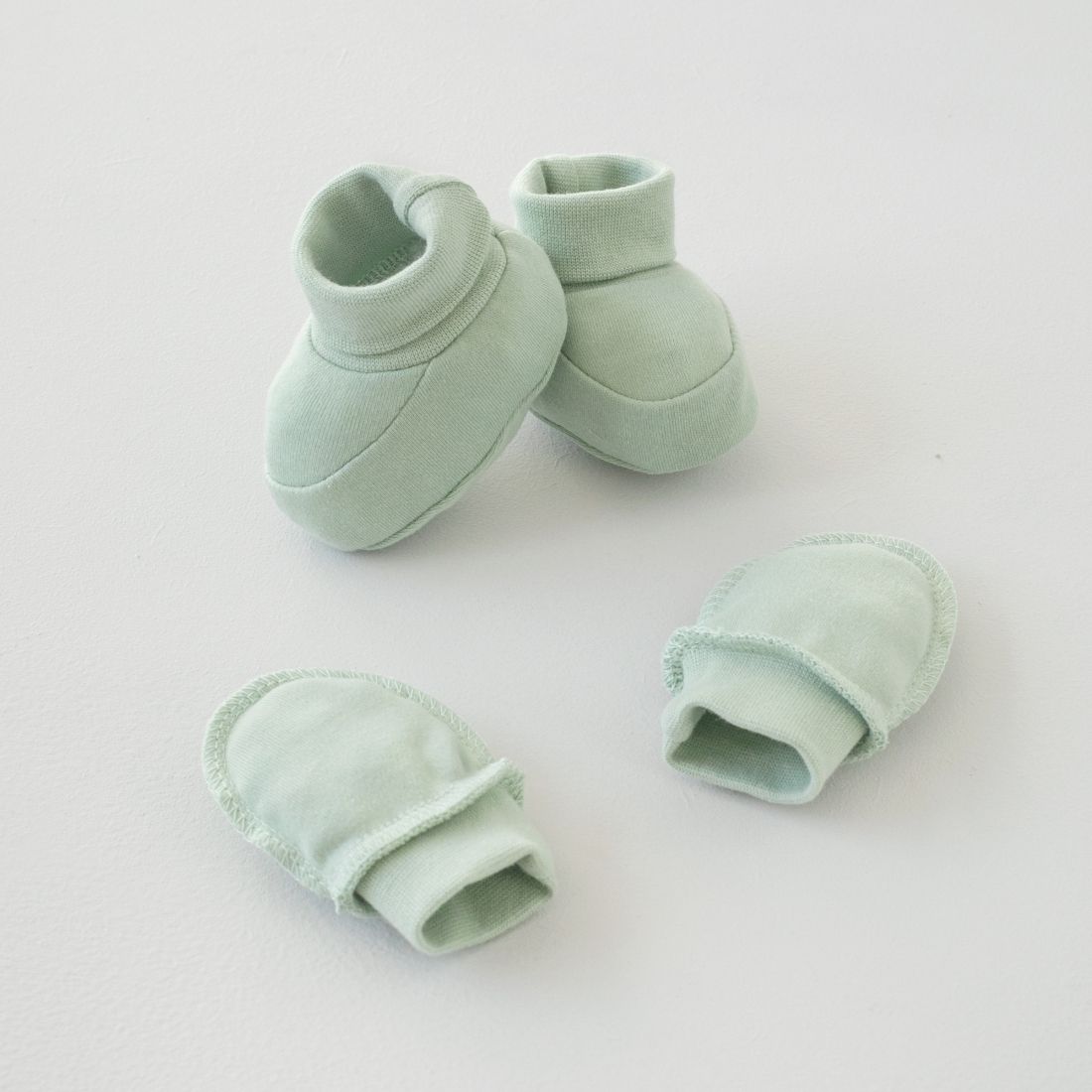 Комплект рукавичек и пинеток на высокой мягкой резинке, разного цветового сочетания.