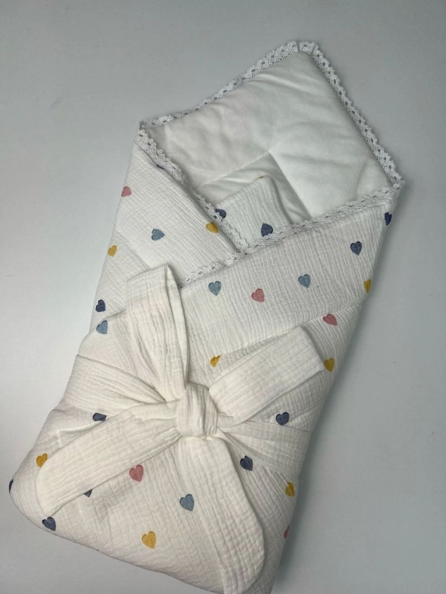 Конверт на выписку муслин 2в1(одеяло+бант)