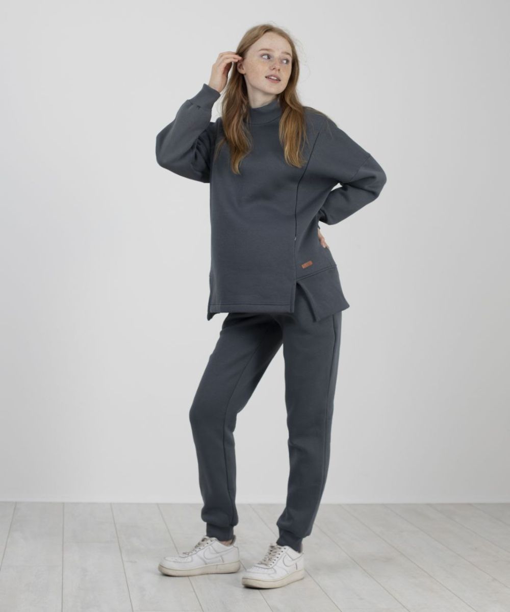 Теплый костюм для беременных и кормящих мам из толстого футера с начесом подойдет на самое холодное время года.