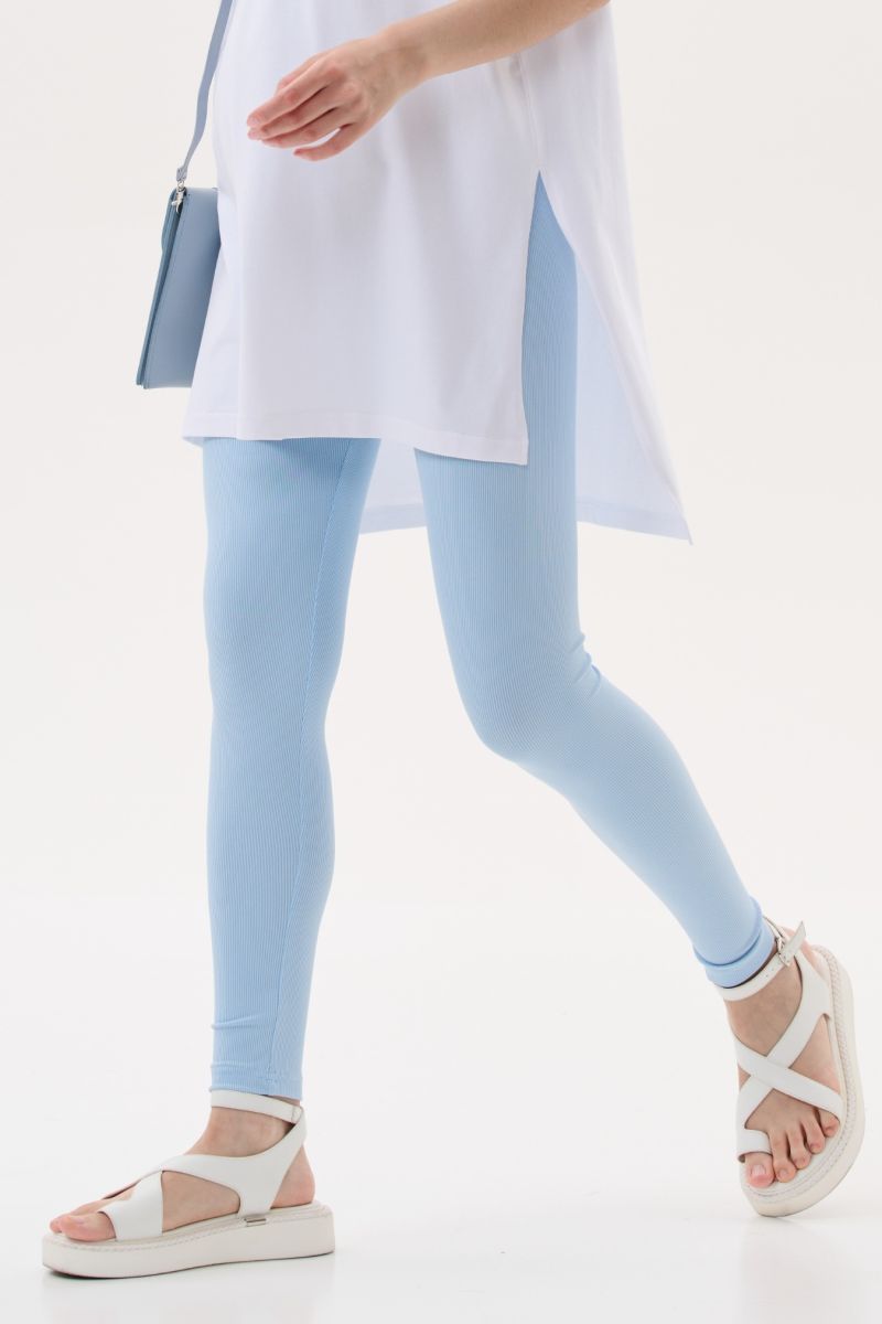Легинсы для беременных тонкие из приятного мягкого трикотажного полотна в рубчик. Благодаря материалу хорошо приспособлены к изменениям фигуры.