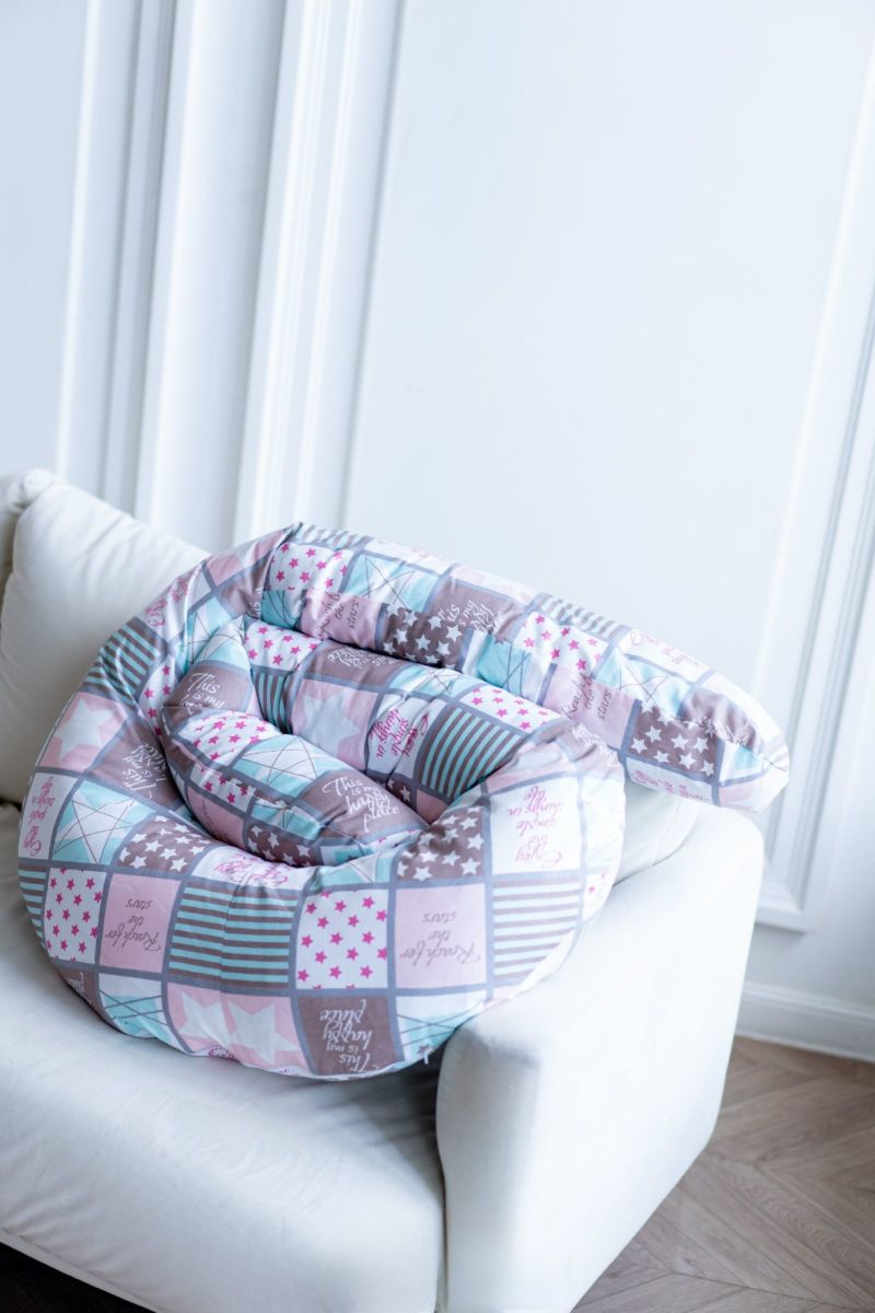Подушка пригодится вам во время сна, отдыха или игр с детьми. Она мягко и уютно обволакивает каждую сторону вашего тела. Будущая мама сможет с комфортном устроиться, получив поддержку для поясницы и животика. Наполнитель - мягкий и бесшумный холлофайбер, который не слеживается и абсолютно не пахнет.