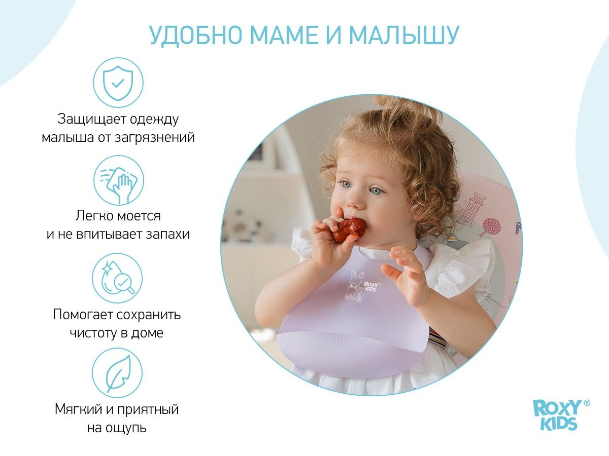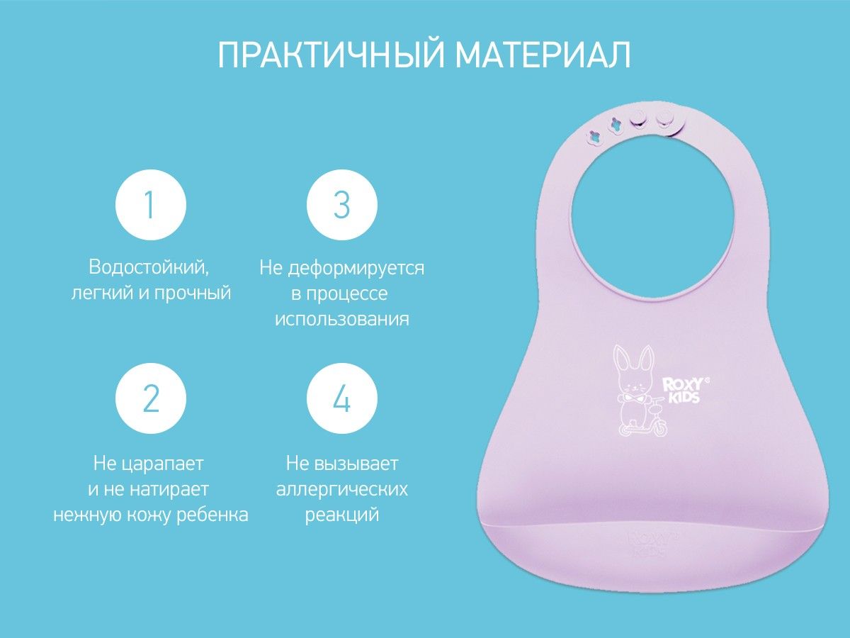 Нагрудник детский с карманом надежно защитит одежду вашего малыша от загрязнений и сохранит чистоту в доме. Мягкий на ощупь, но прочный материал не поцарапает и не натрет нежную шею ребенка. Нагрудник не впитывает запахи и легко моется даже в посудомоечной машине при температуре не больше 80 градусов Цельсия. Отличительной особенностью этого нагрудника является особая надежная застежка, которая позволяет регулировать размер аксессуара, а также не даст ребенку самостоятельно снять нагрудник с себя. Глубокий карман для крошек предназначен для того, чтобы еда не оказалась на столе или на полу. Эргономичная форма повторяет очертания тела малыша. Изготовлен полностью из гипоаллергенного материала. При необходимости слюнявчик можно легко свернуть в трубочку и взять с собой. Материал не деформируется в процессе использования.