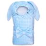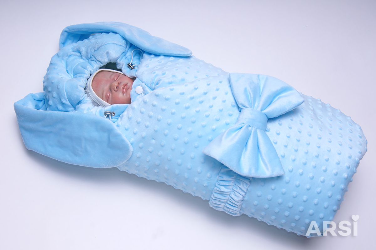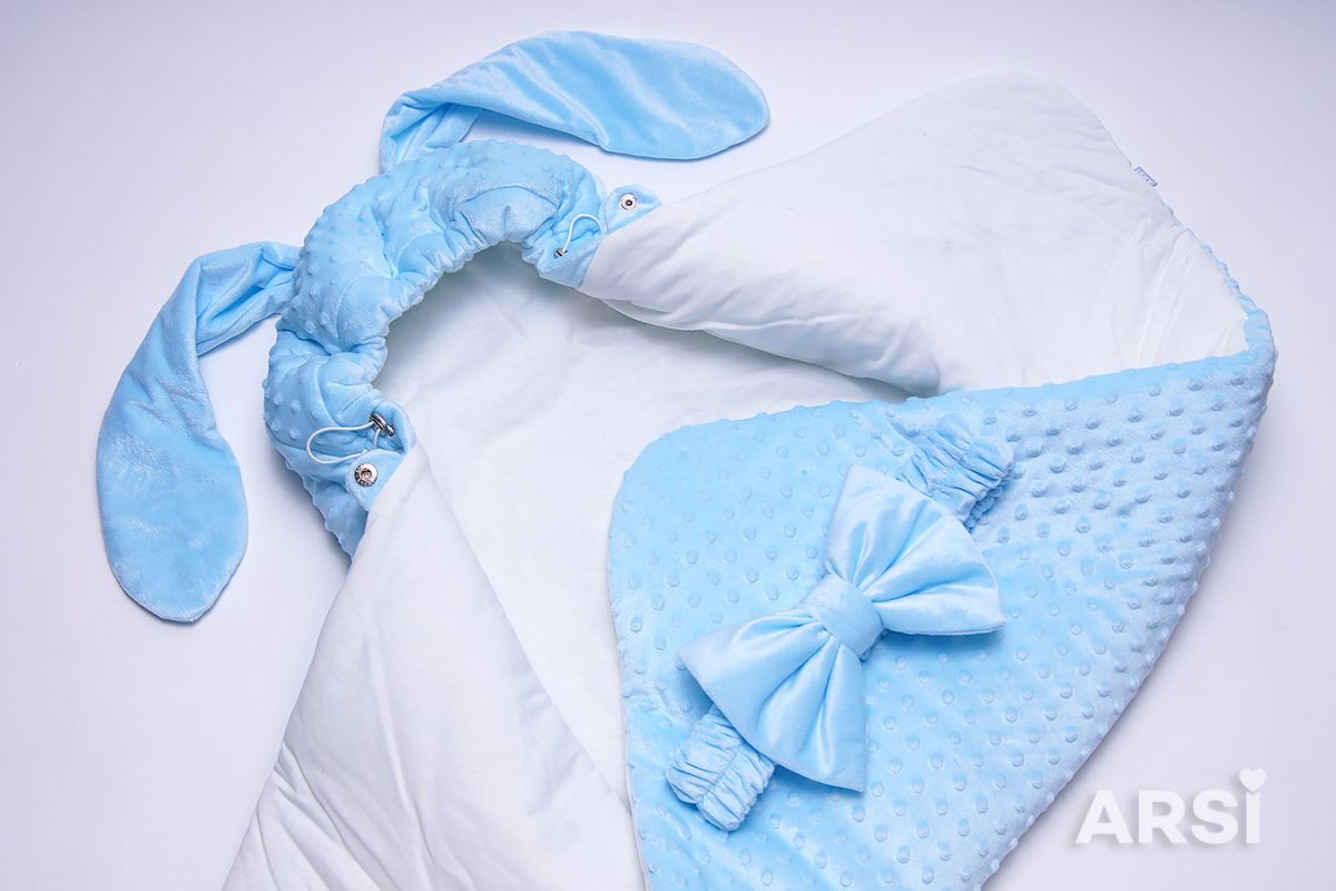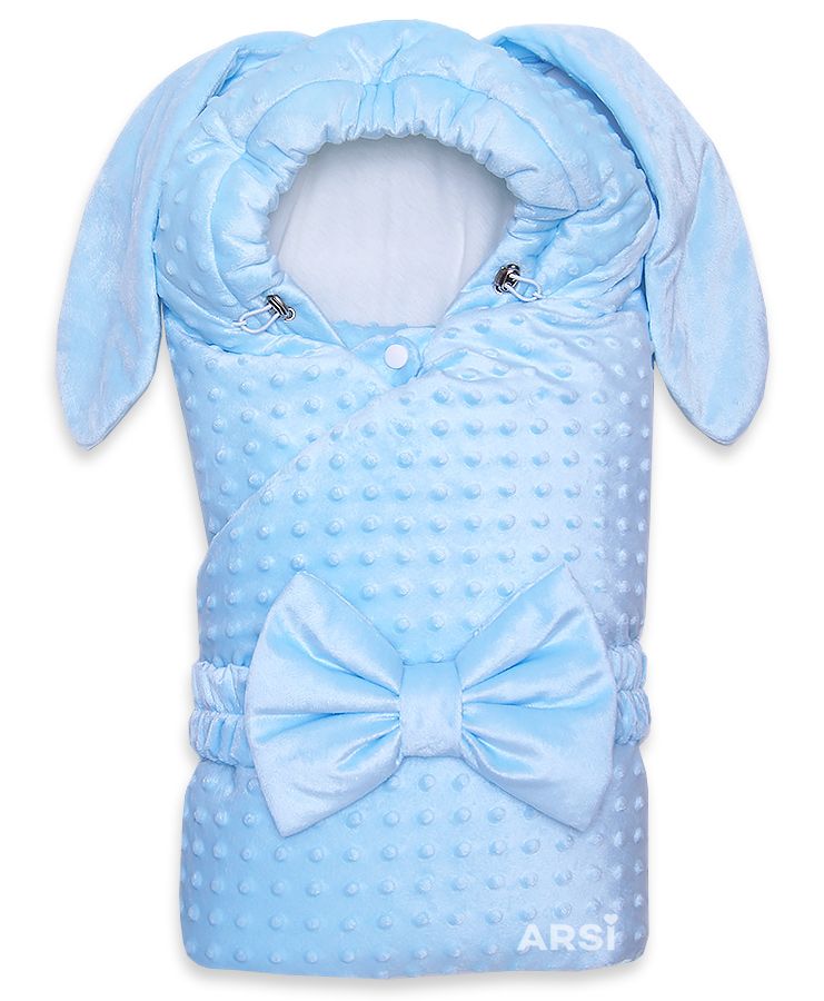Одеяло на выписку с капюшоном прекрасно подойдет для межсезонья. Тёплое, нежное и очень приятное на ощупь оно согреет Вашу кроху в ненастную погоду. А милые заячьи ушки создадут приятную атмосферу и подарят улыбку Вам и Вашим близким.