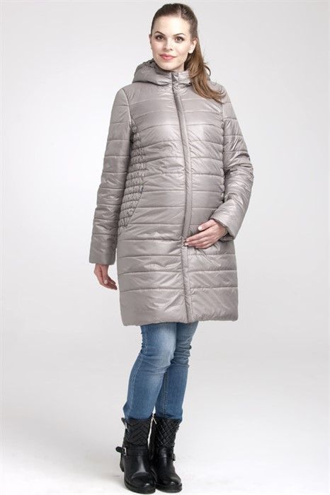 Зимнее пальто полуприлегающего силуэта. Удлиненное классическое пальто подчеркнет элегантность беременной девушки, а после беременности станет незаменимой вещью в гардеробе. За счет боковых подрезов простеганных резинкой спандекс будущим мамам будет комфортно в таком пальто. Воротник переходящий в капюшон защитит от непогоды, застежка молния закрыта ветрозащитной планкой. Карманы на потайной молнии в шве подреза.