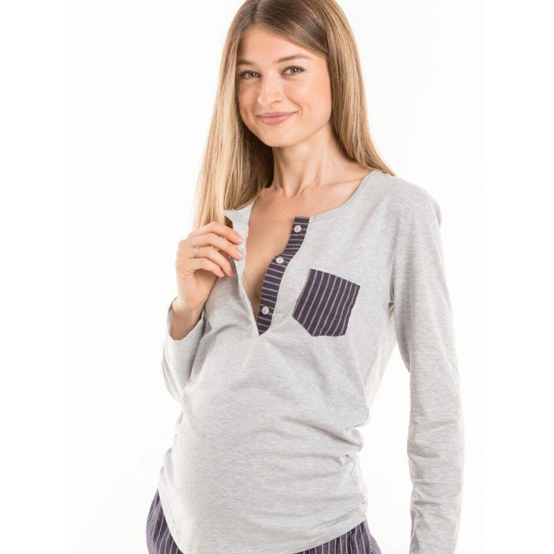 Уютная теплая пижама для беременных из высококачественного хлопка. Брюки из теплой фланели под живот на резинке с возможностью носить после родов. Свитшот из эластичного хлопка высшего качества (пенье). Есть планка с пуговицами, чтобы удобнее было покормить малыша.