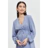 Талия завышена на кулиске, которая позволит регулировать объем на любом сроке и после родов. Интересный вырез со вставкой притягивает взгляды, красиво приоткрывает зону декольте. Фасон с широким воланом внизу, его воздушной стилистике вторят просторные длинные рукава на резинке.