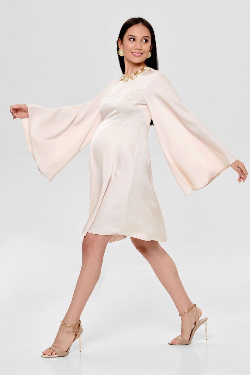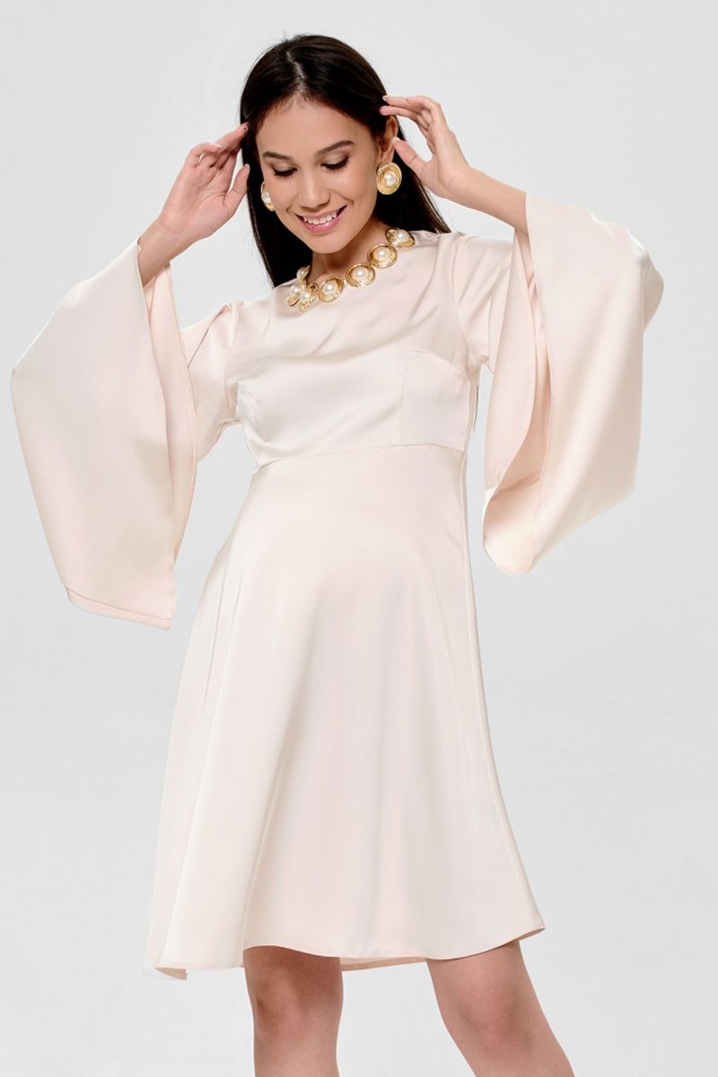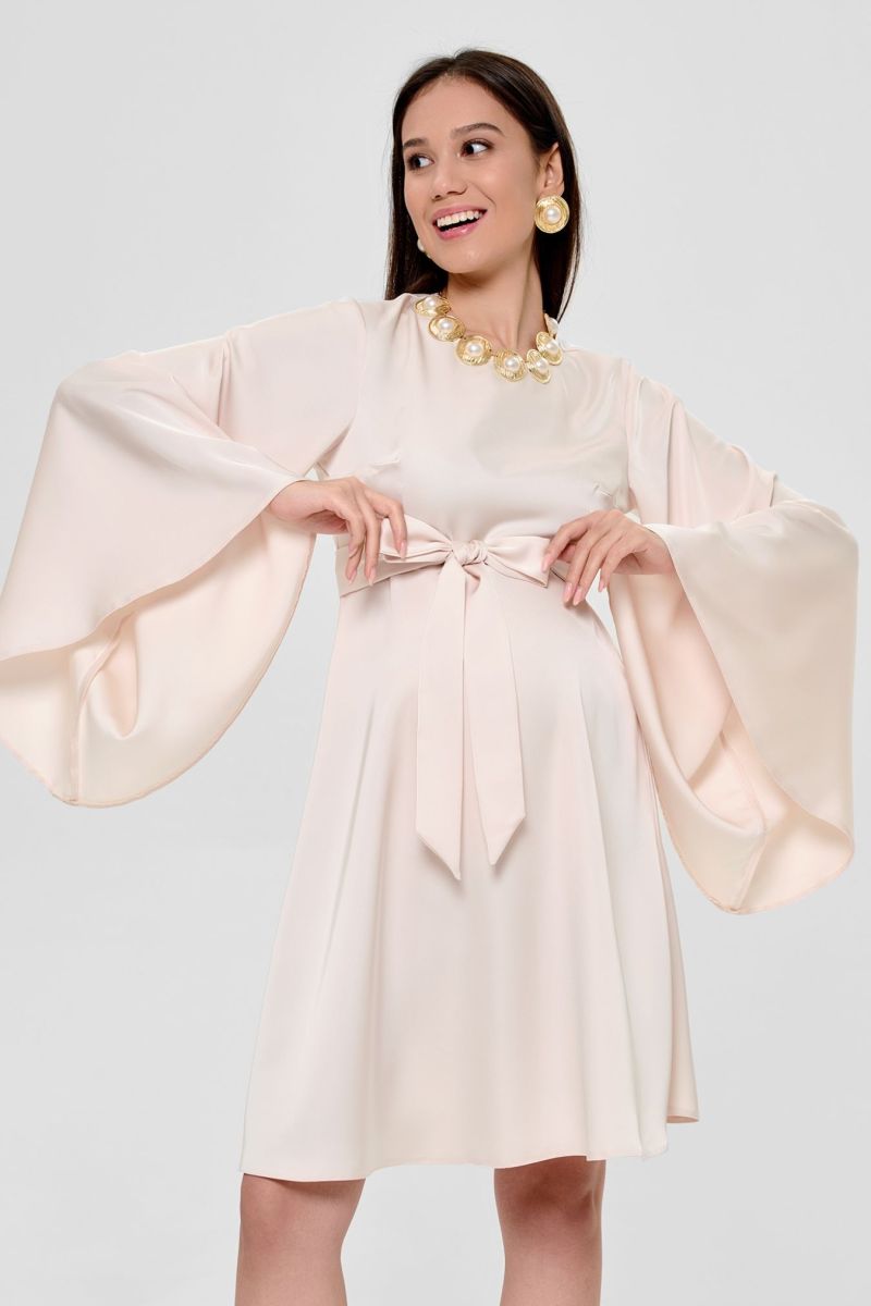 Платье для беременных нарядное из плотного струящегося атласа длиной до колен.Эта женственная модель сделает Ваш образ неотразимым и идеально подойдет для торжества.