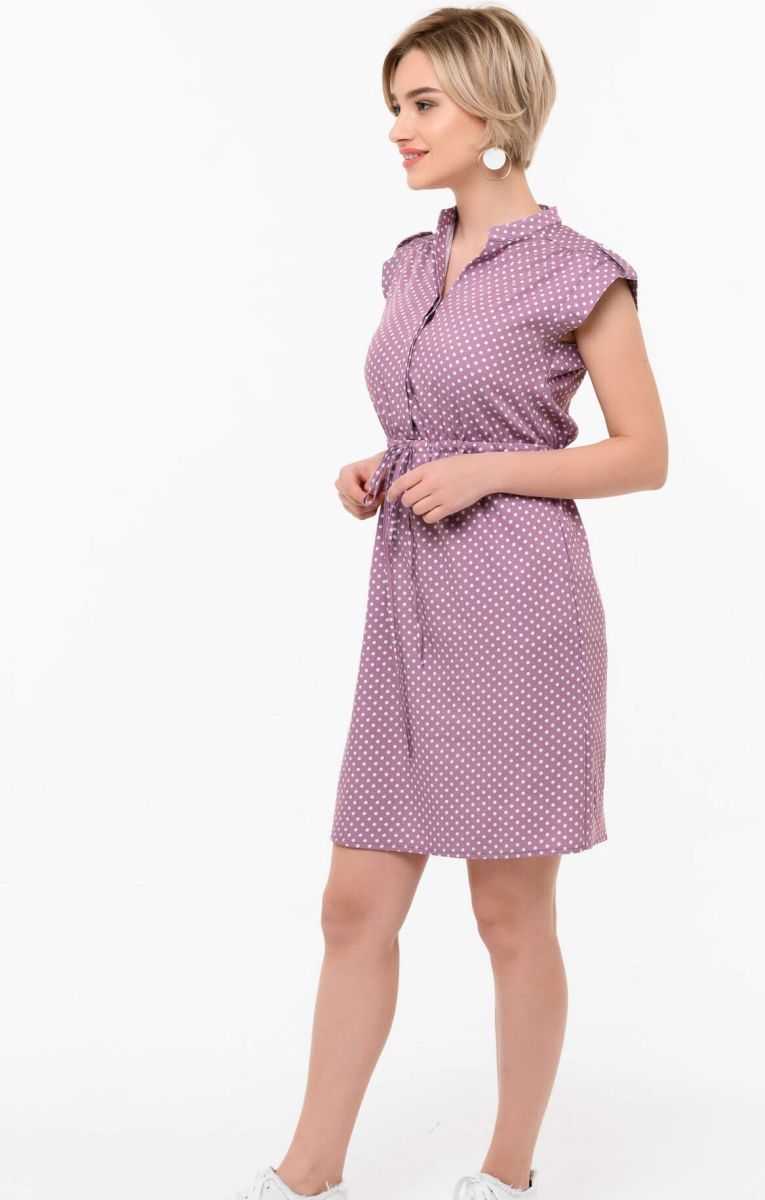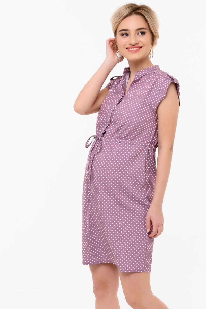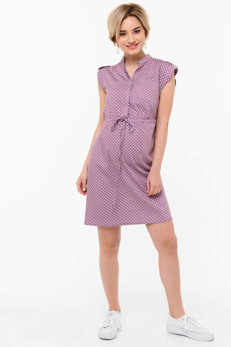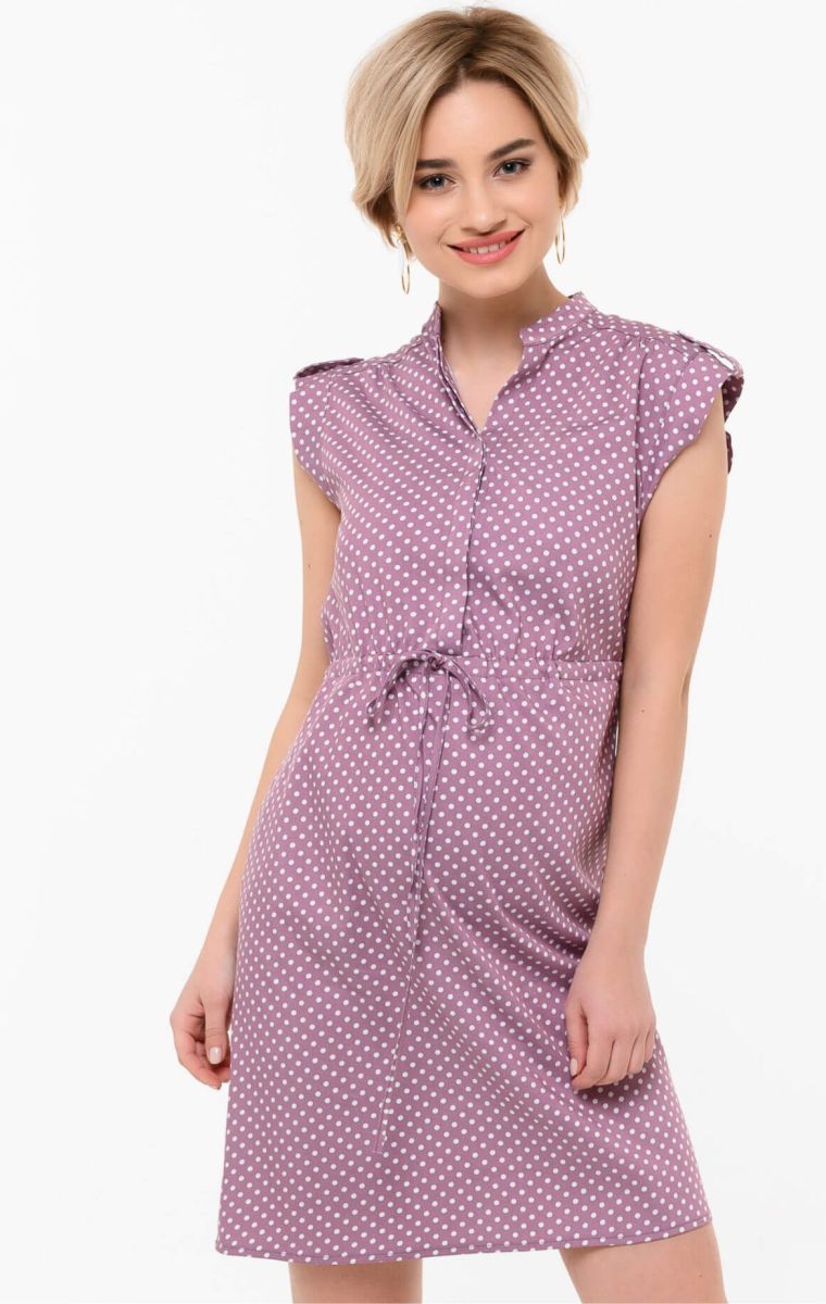 Платье для беременных летнее в белый горох длиной до колен. Аккуратный воротник-стойка переходит в планку с потайными пуговицами и идеально гармонирует с небольшими декоративными погонами на приспущенных плечах. Благодаря удобной застежке модель можно использовать как платье для кормления грудью. Кулиска на талии позволяет корректировать объем модели. В результате платье для будущих мам подойдет на любом сроке беременности и после родов. В боковых швах предусмотрены карманы.