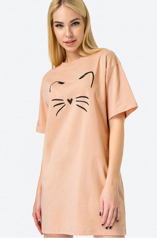 Домашнее платье не боится частых стирок и надолго сохраняет форму и цвет. Хлопковое платье-футболка дарит свободу движений благодаря крою oversize, удобным широким рукавам и длине выше колен. Подходит для ношения в период беременности и в обычной жизни.