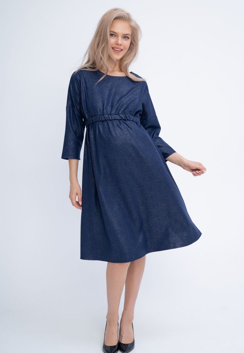 Нарядное платье для беременных и кормящих мам со спущенным рукавом из плательной ткани с голографическим эффектом. Блёстки НЕ осыпаются! Секрет для кормления - в вертикальных замках-молниях на груди. Объём талии можно регулировать пояском сзади.