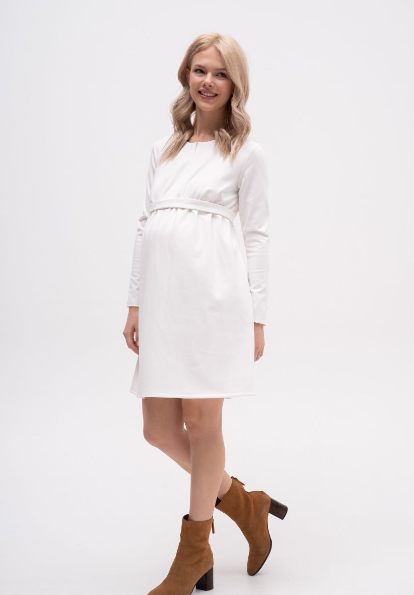 Платье для беременных и кормящих мам А-силуэта с завышенной талией и съёмным поясом. Выполнено из плотного, эластичного, мягкого плательного трикотажа джерси. Секрет для кормления-вертикальная потайная молния по центру лифа.