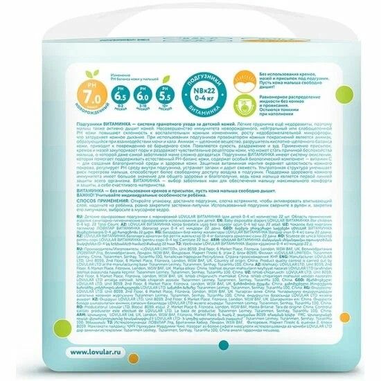 Подгузники ЛОВУЛАР ВИТАМИНКА NB 0-4 кг