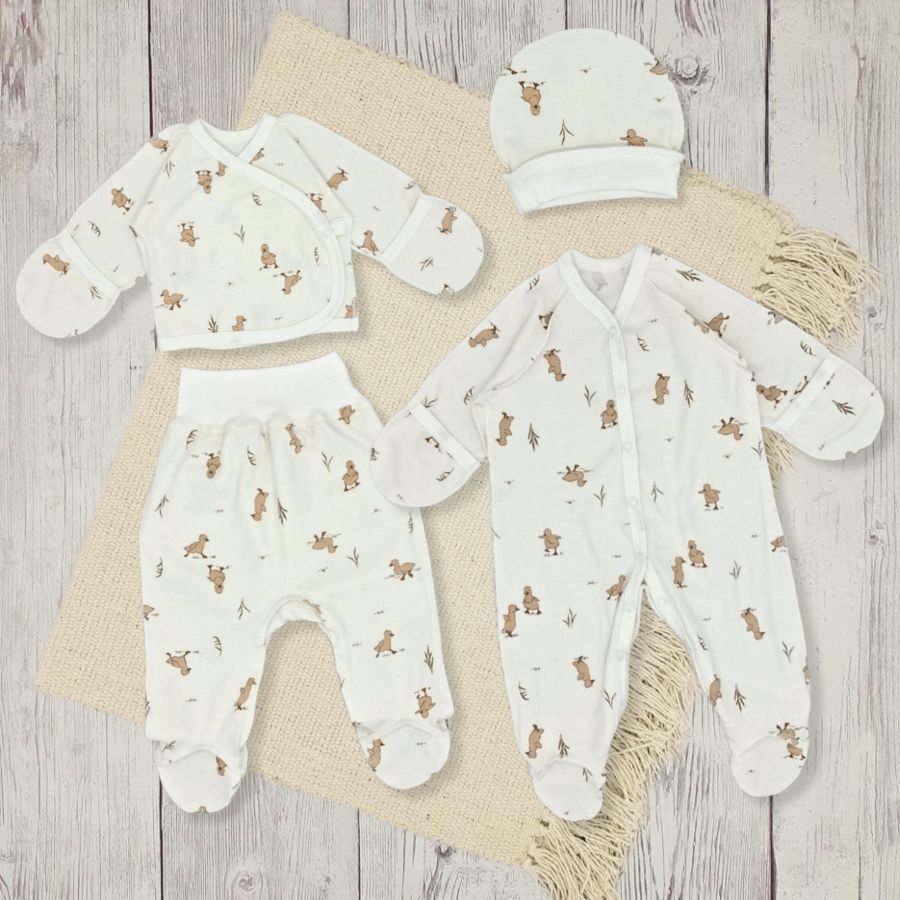 Отлично сочетаются с другими предметами этой серии (распашонки, шапочки, комбинезоны) и образуют комплект.