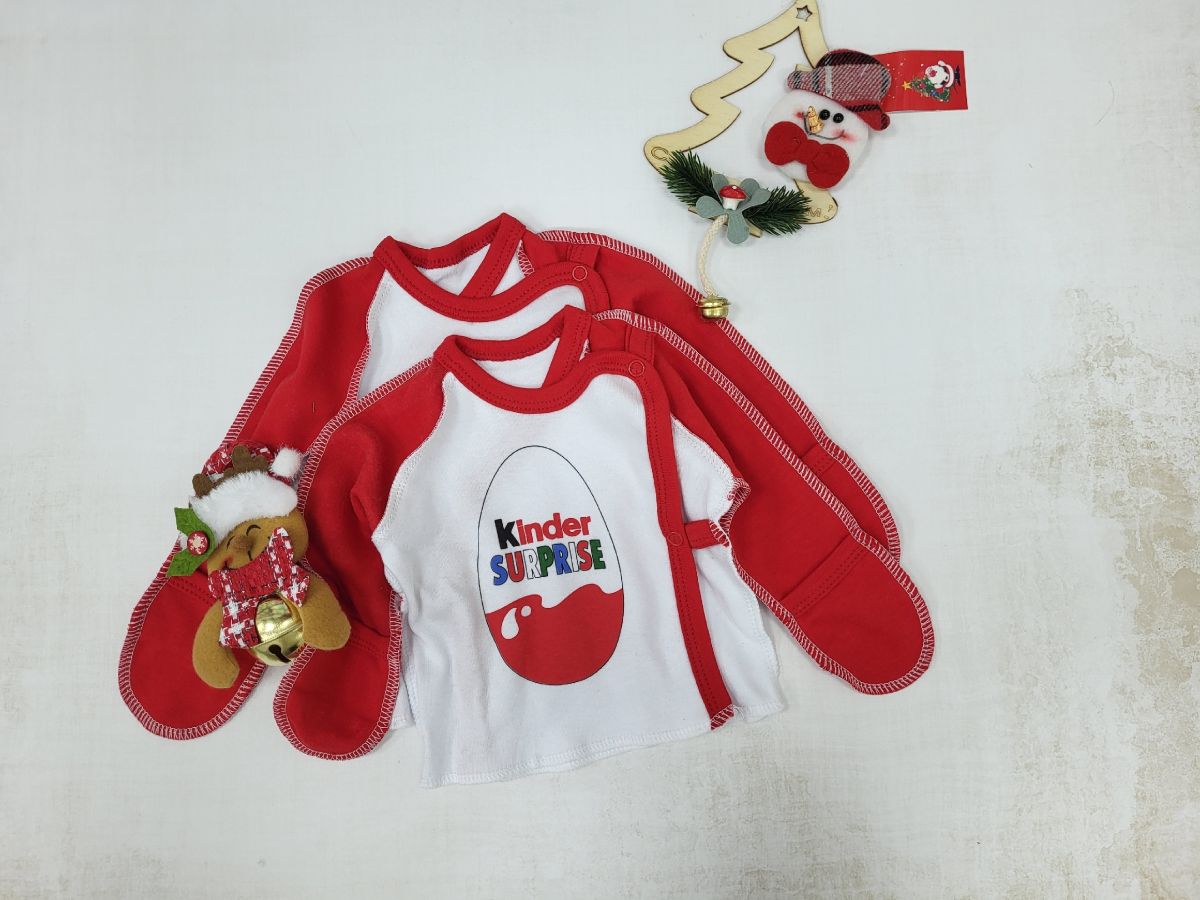 Распашонка с принтом Kinder Surprise станет отличным подарком на рождение малыша, идеальным нарядом для фотосессии.