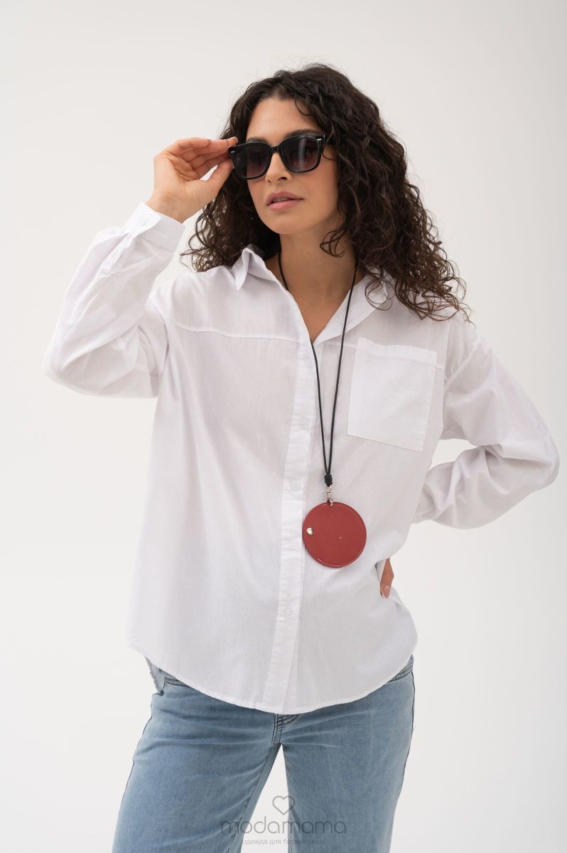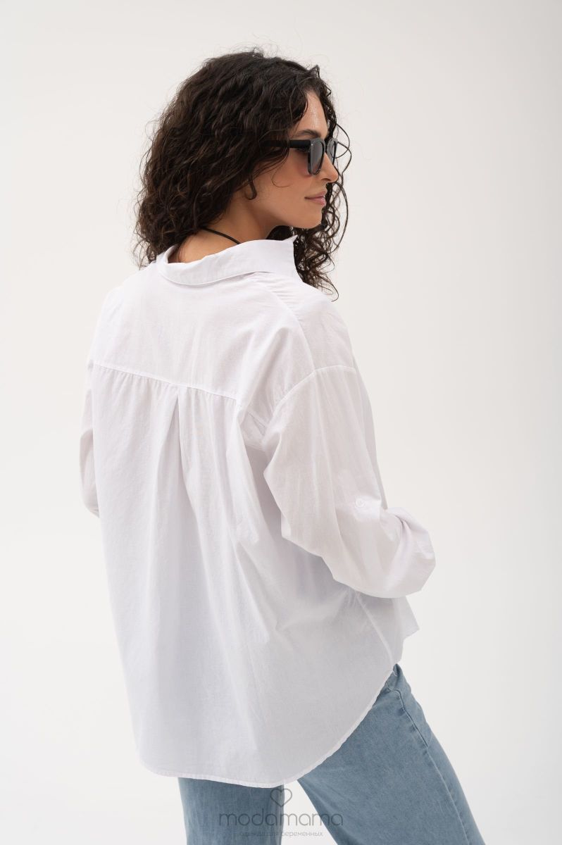 Рубашка на пуговицах свободного универсального силуэта в стиле оверсайз со спущенным плечом. Выполнена из тонкой хлопковой рубашечной ткани с льняным переплетением.