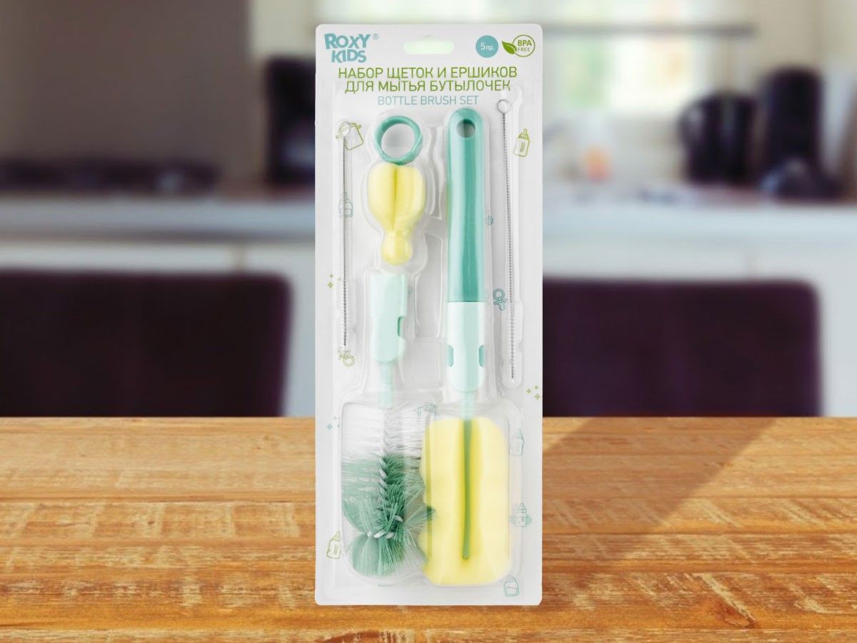 Набор щеток и ершиков ROXY-KIDS разработан специально для мытья бутылочек, трубочек, сосок и помогает сделать эту ежедневную процедуру максимально быстрой и удобной. В состав набора входят две сменные насадки для мытья бутылочек, маленькая щетка для соски и два мини-ершика для чистки трубочек. Классический жесткий ершик и мягкая поролоновая щетка предназначены для загрязнений разной степени. Они легко меняются и надежно защелкиваются на эргономичной рукоятке. Длина рукоятки 30 см позволяет почистить даже самые высокие бутылочки. Маленькая щетка повторяет форму соски, а ручку в форме кольца удобно держать, надев на палец. Мини-ершик – незаменимый инструмент для очистки силиконовых трубочек от остатков напитков. Он имеет оптимальный диаметр 5 мм и долговечную жесткую нейлоновую щетину.