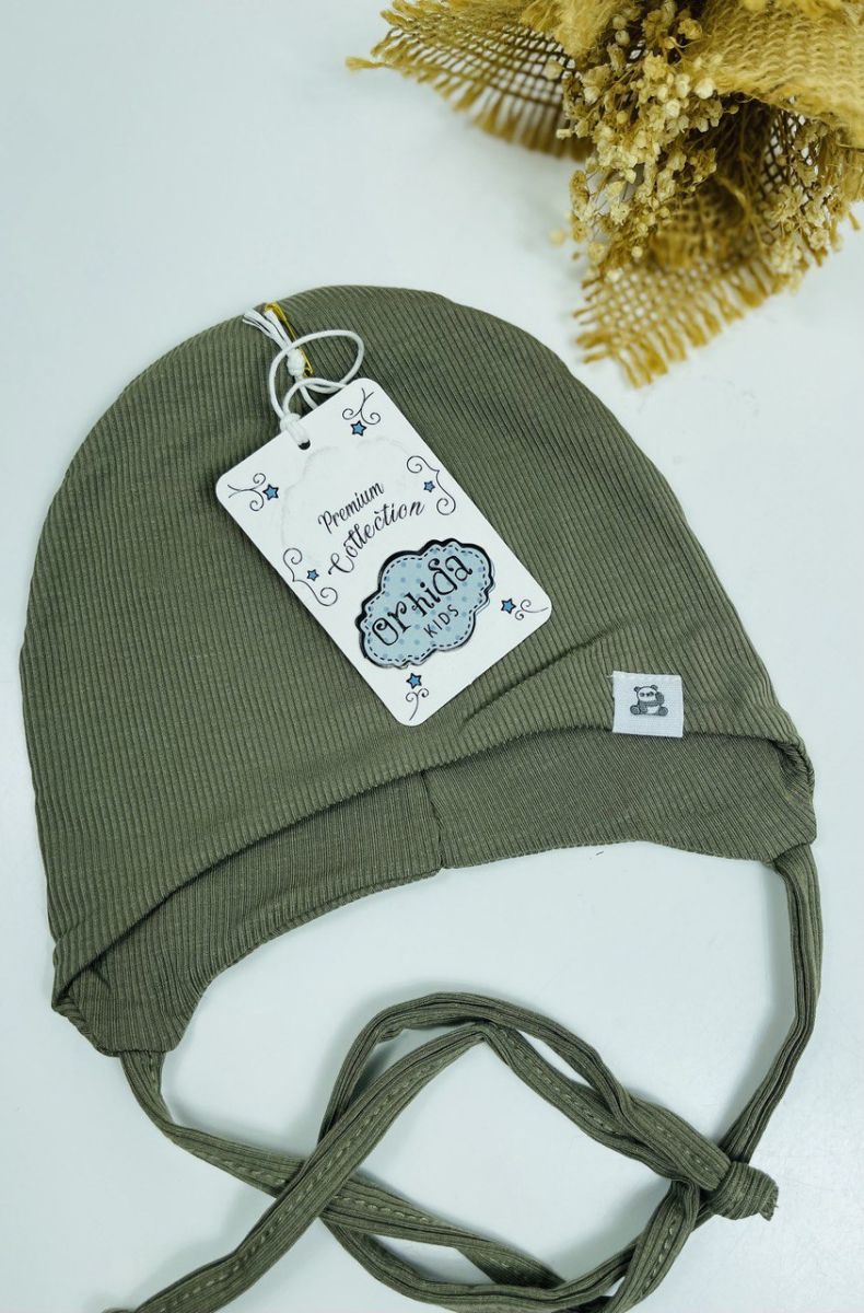 Шапочка-чепчик «Пандочка» в рубчик, с завязками