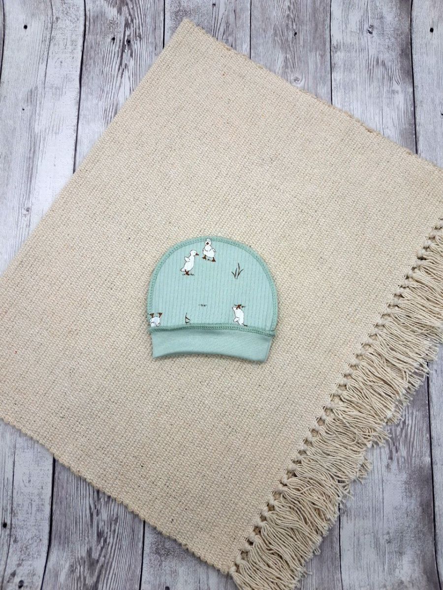 Шапочка серии "Гуси-маргаритки" из интерлока создана для новорожденных детей.